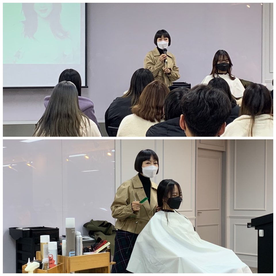 WELLA Professionals Asia Region Artist 와 서울 제이드뷰티 김상희대표님께서 저희 대학까지 방문하시어 커트 특강을 진행해 주셨습니다.