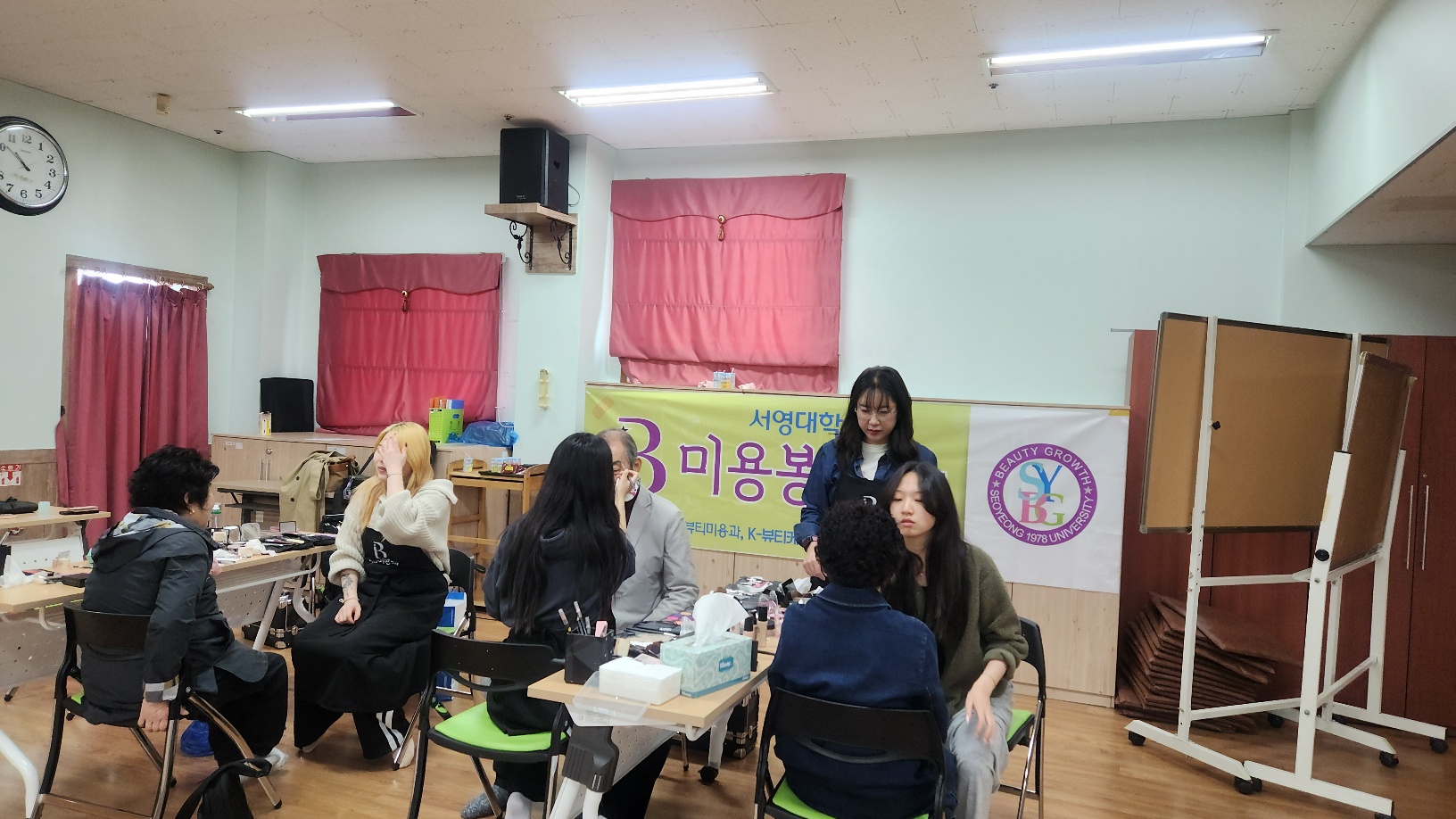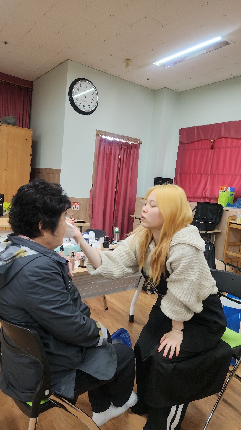 광주공원 노인 복지관에서 주최하는 행복나눔 서포터즈에 뷰티미용과 1~2학년이 참여해 어르신들의 인생사진관 촬영에 도움이 되는 메이크업을 전담했다.