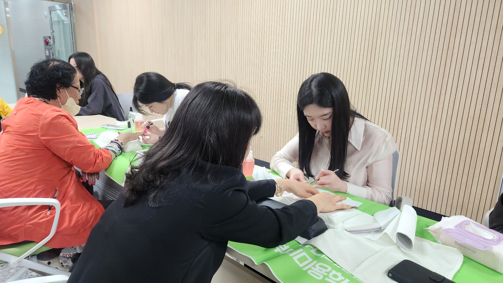 ○북구청 대학연계 프로그램에서 서영대학교 뷰티미용과와 함께 헤어과정의 두피와 네일아트 과정이 북구 주민 대상으로 재능나눔 봉사가 이루어졌다.