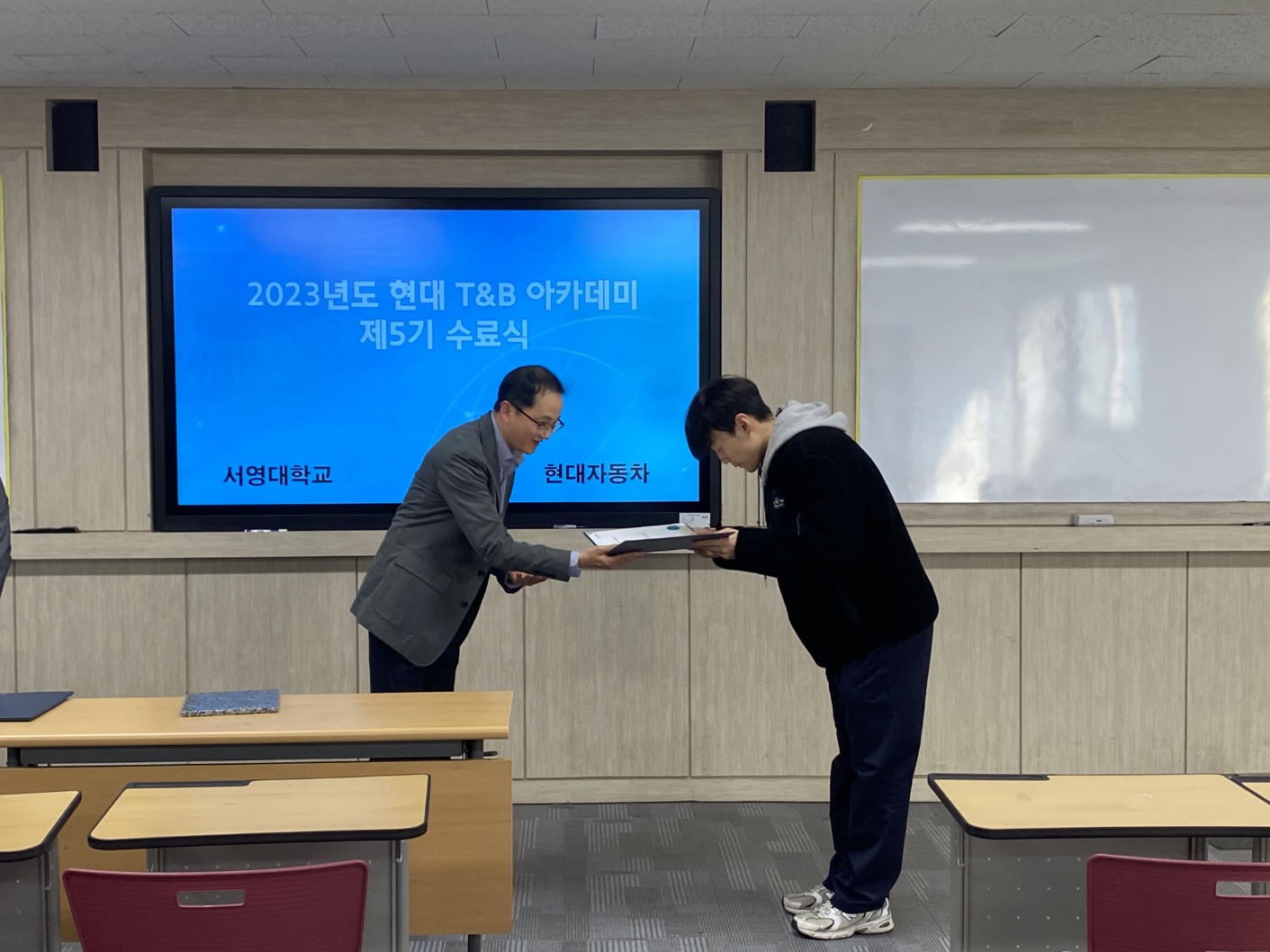서영대 자동차과는 2023년 제 5기 현대자동차 T&B 아카데미 수료식을 11월 13일에 실시하였습니다.