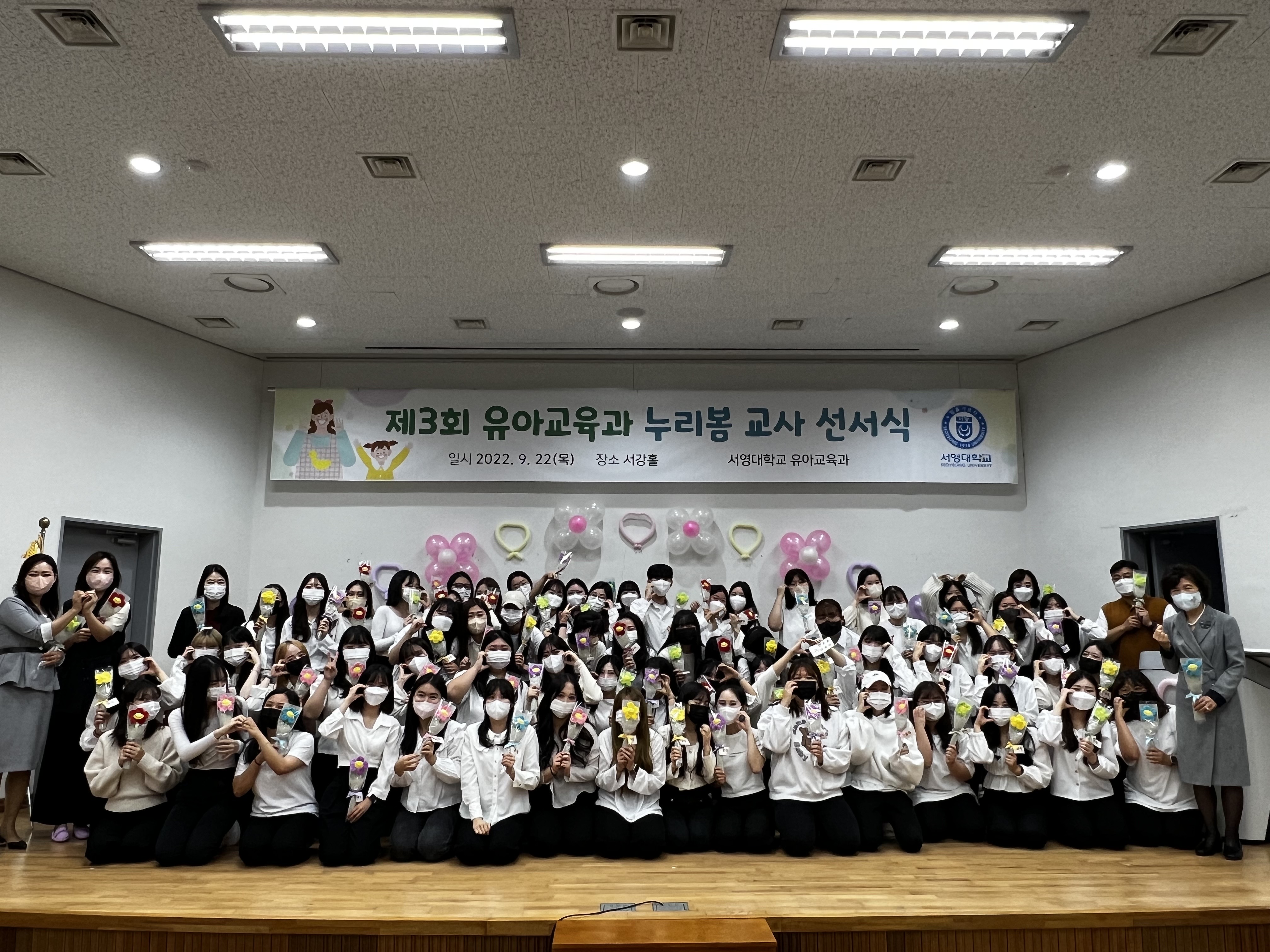 - 내용 : 10월에 진행되는 학교현장실습에 앞서 유아를 사랑하고 이해하는 유능한 교사, 좋은 교사가 될 것을 교사선서식을 통해 다짐하였습니다.