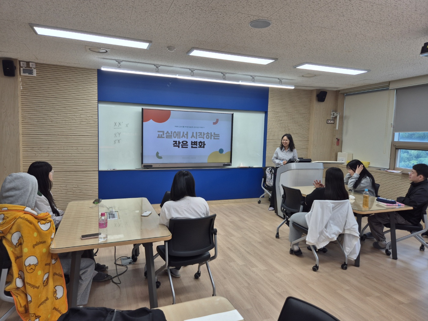 - 내용 : 환경감수성의 개념과 중요성을 이해하고, 유아교사로서 일상 속에서 실천할 수 있는 친환경 생활습관을 배우는 시간이었습니다.