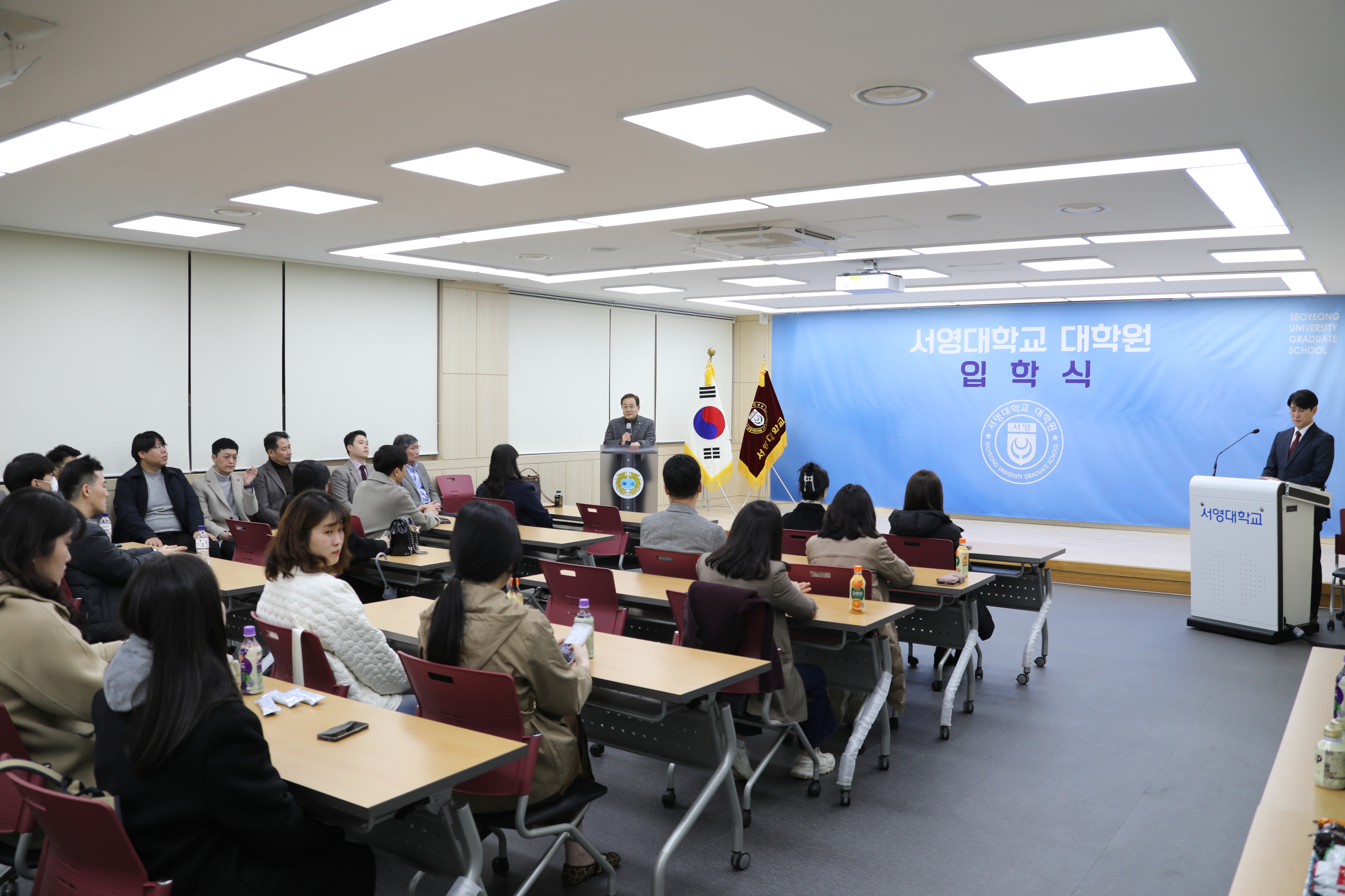 ○ 이번 입학식은 박정수 서영대 대학원장을 비롯한 전공 교수진과 대학 관계자, 재학생 20명이 참석한 가운데 개회사, 대학원장 환영사, 재학생 대표 환영사, 교수진 소개, 학과 및 전공 소개, 폐식사 순으로 진행됐다.