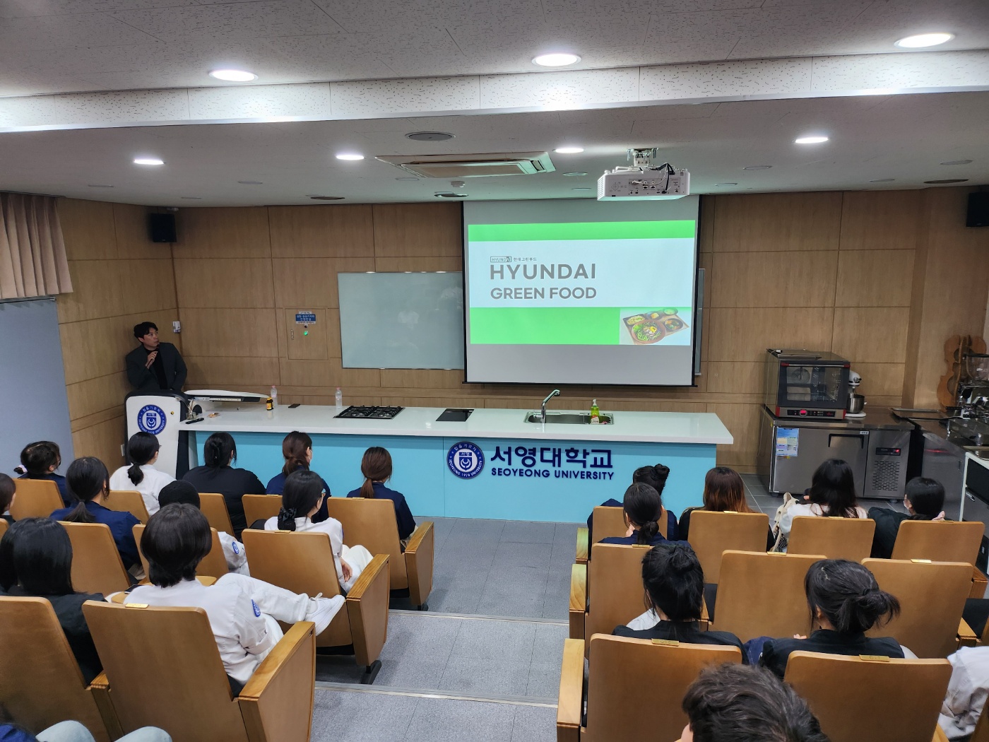 서영대학교는 29일 교내 서영관 데모키친실습실에서 현대그린푸드 인사담당자를 초청하여 표준현장실습 사전설명회 및 채용설명회를 진행하였습니다.