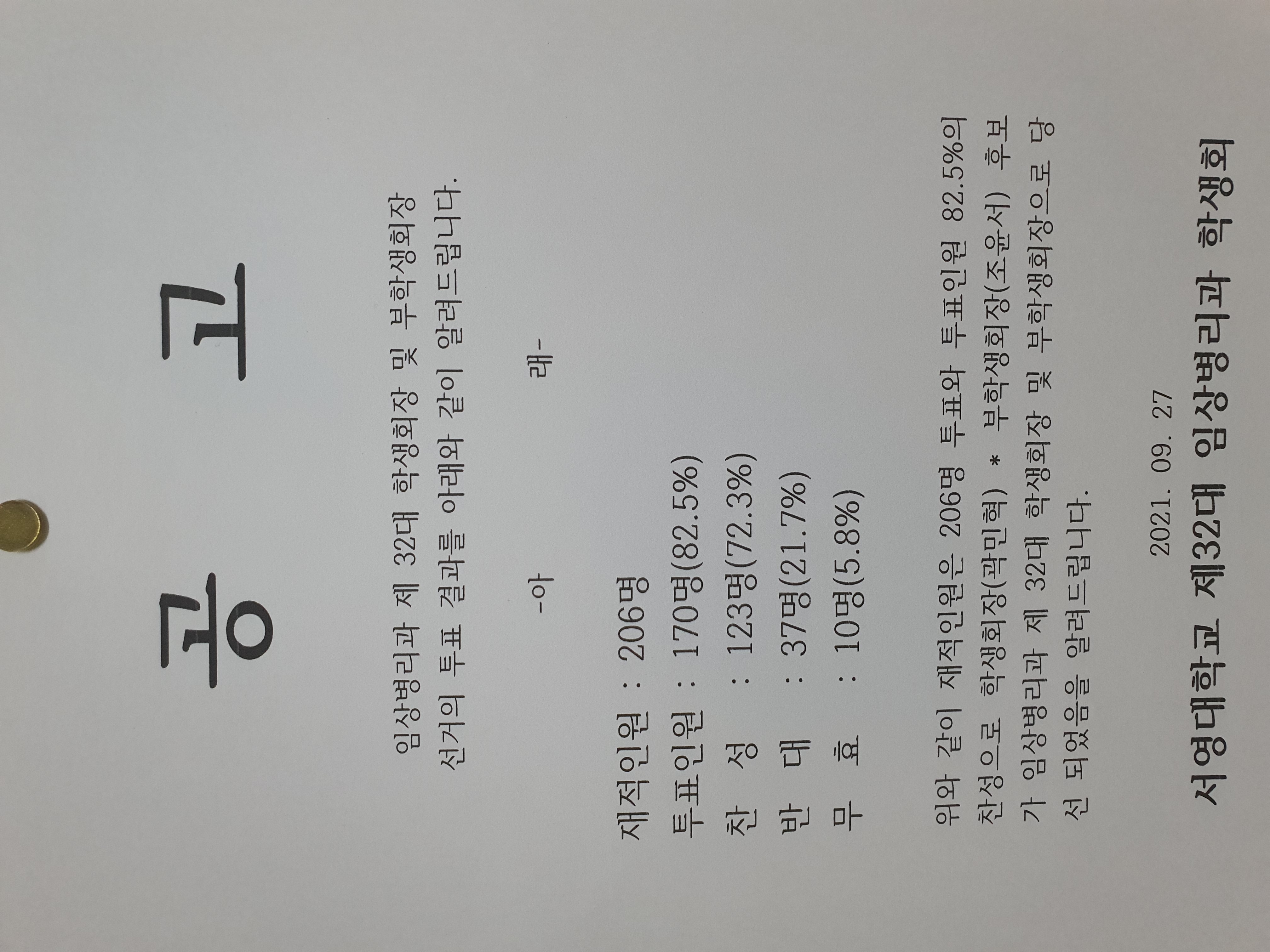 우리 대학 임상병리과는 9월 27일 제32대 학생회장 및 부학생회장 선거를 실시하였습니다