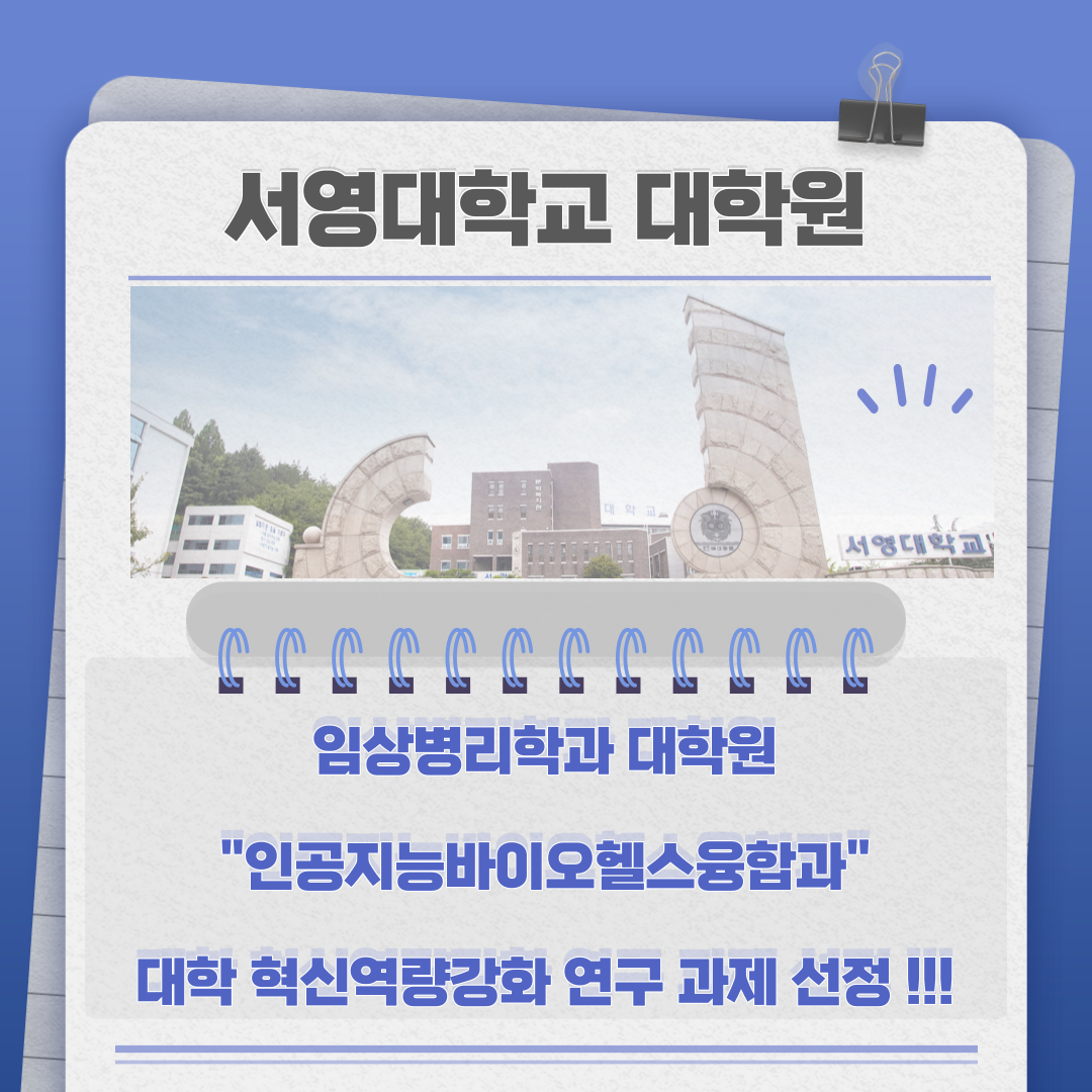 서영대학교 임상병리학과 대학원 "인공지능바이오헬스융합과" 대학 혁신역량강화 연구 과제 선정 !!!
