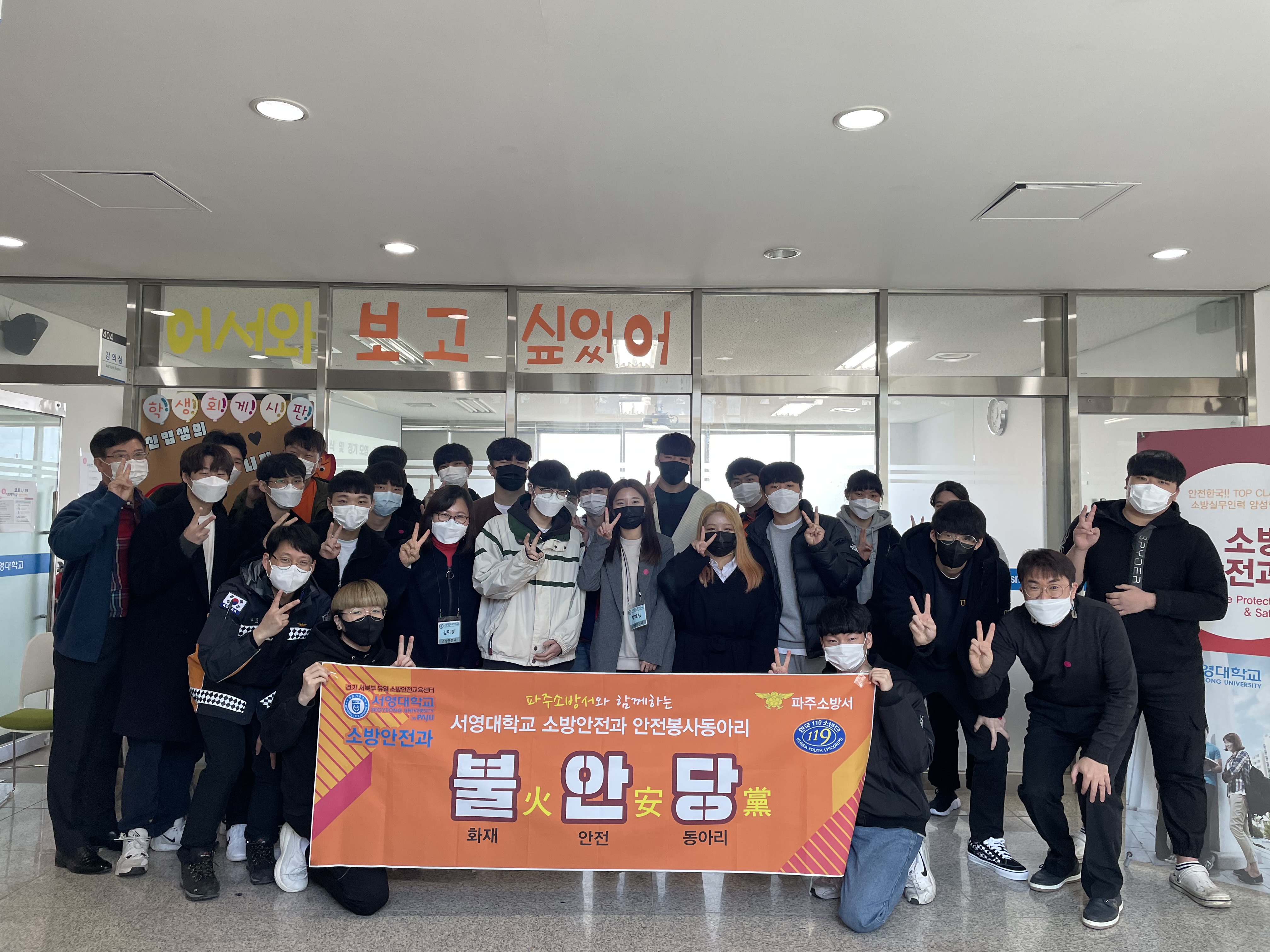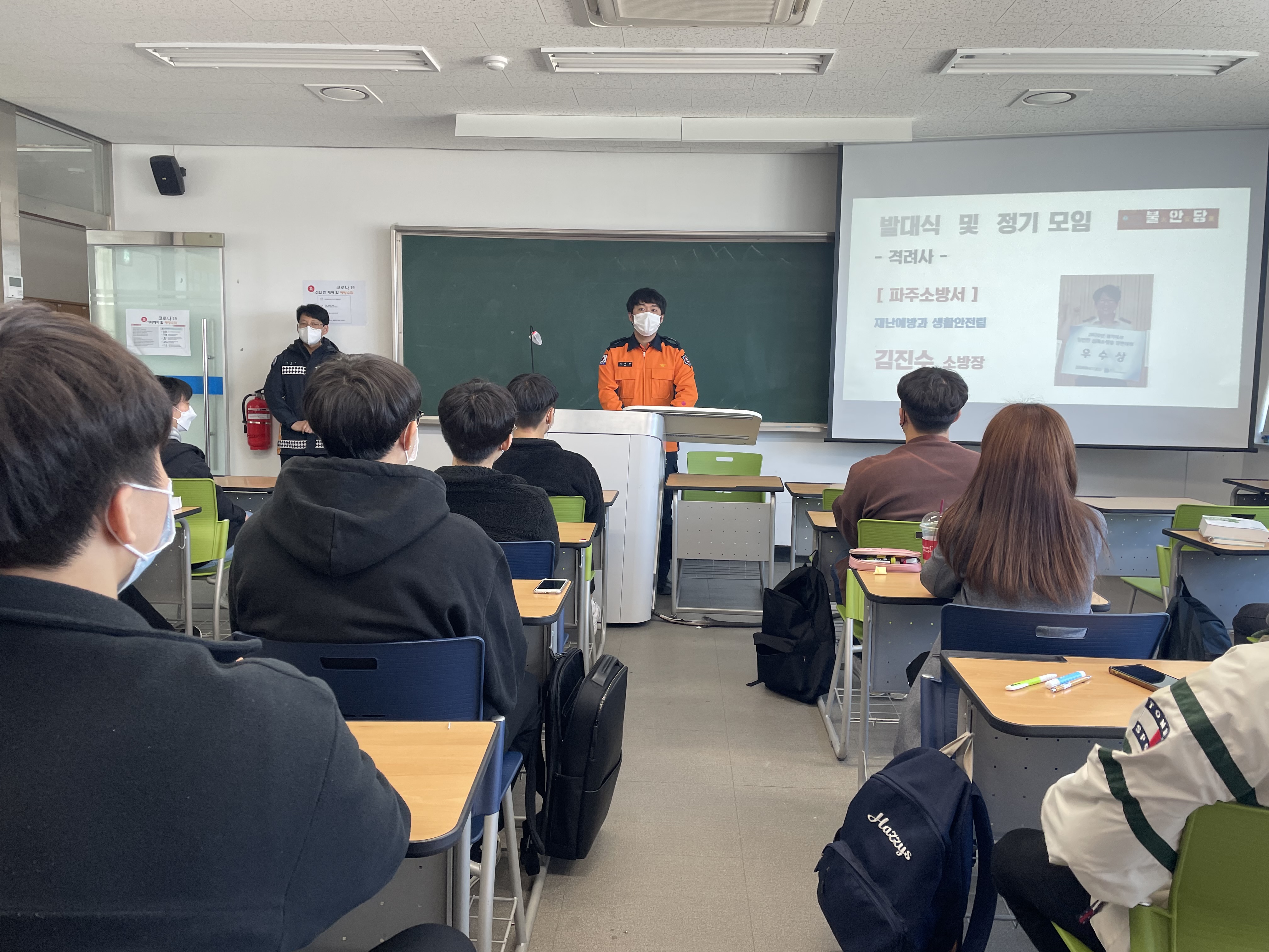 o. 소방안전과 ( 학과장  천종철) 는 22일(월)  파주소방서 재난예방과 김진수 소방장 등 파주소방서 관계자 2명과