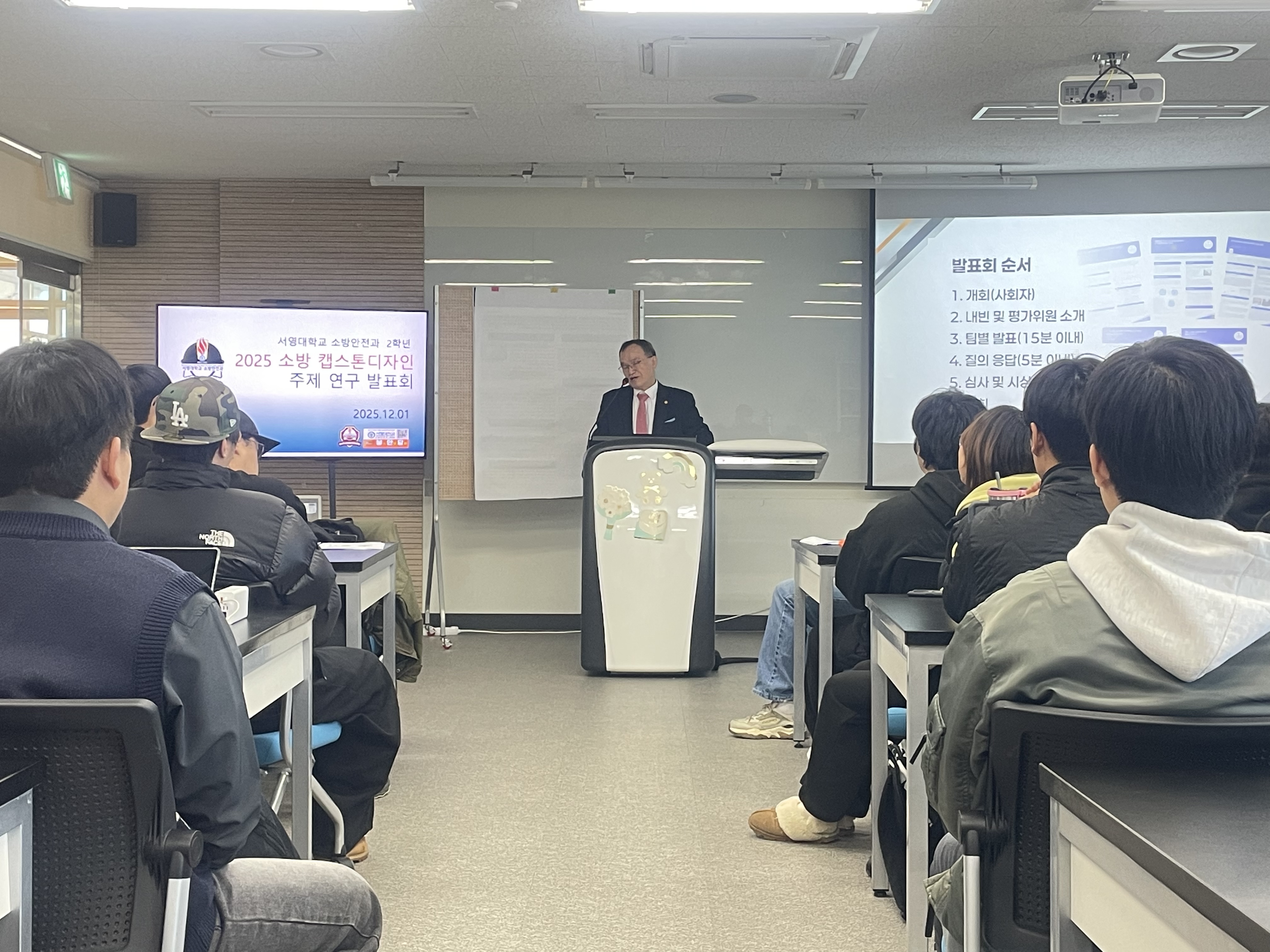 26년 졸업 예정 주간반 미래 소방인 들의 연구주제 발표회를 멋지게 보여주었습니다 .