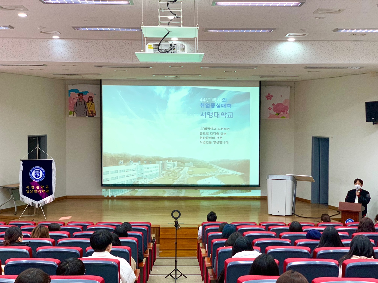 이지웅 학과장은 "서영대학교 파주캠퍼스 임상병리과에 입학한 22학번 신입생 여러분을 뜨겁게 환영하고, 부디 대학 생활을 통해 사회에 진출하여 갖추어야 할 역량을 키우는 소중한 경험을 많이 하길 바란다"고 환영 인사를 전했다. 이어서 신입생들의 대학 생활 적응을 돕기 위해, 우리 대학의 역사와 우리 학과의 연혁, 상징, 교수진, 커리큘럼, 실습 시설, 교과 운영 방향 및 학과 프로그램, 임상병리사 국가시험, 임상병리사 진출 분야 등에 대한 내용을 프레젠테이션으로 안내하였다.