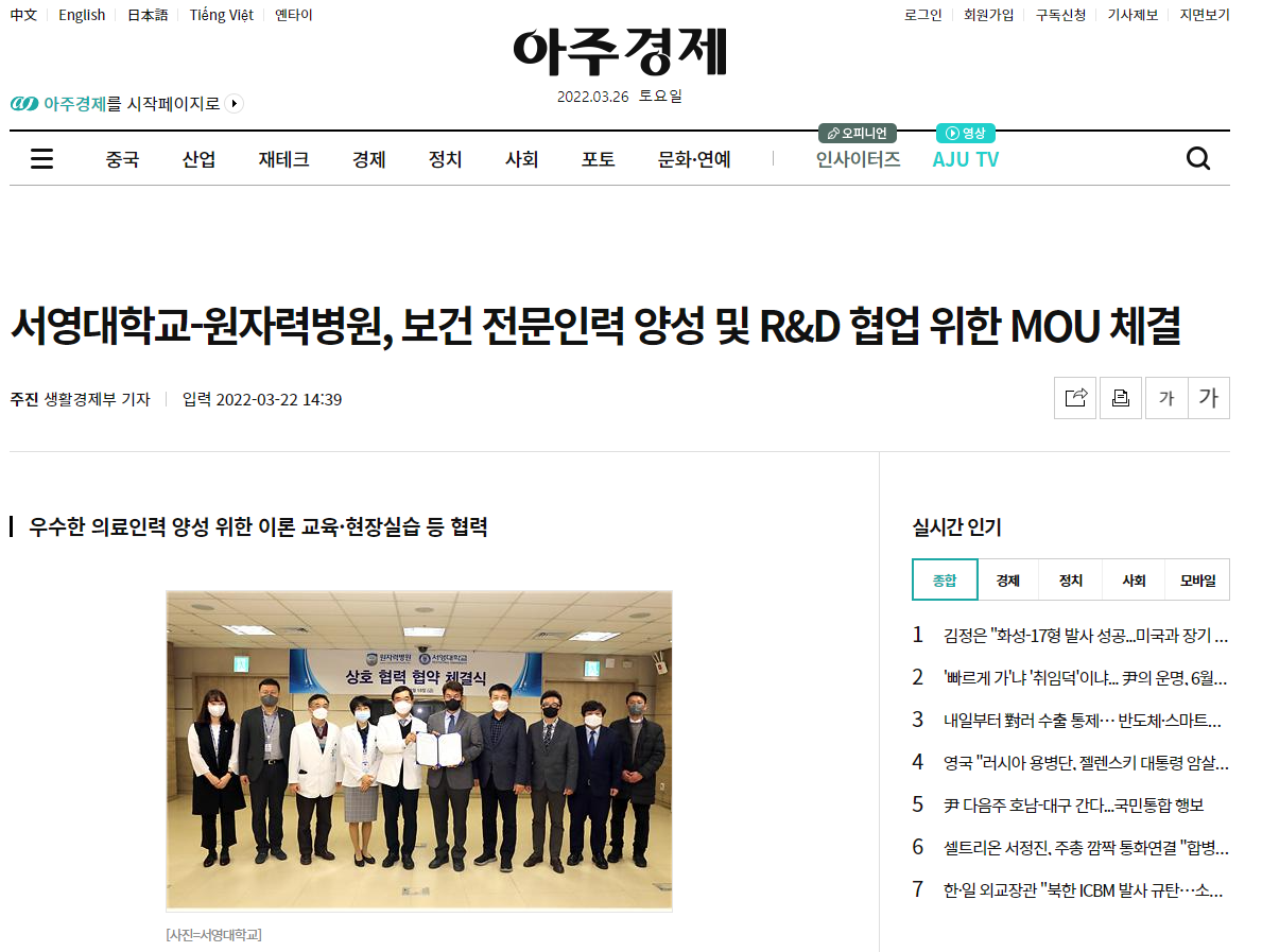 <서영대학교 - 원자력병원간 보건 전문인력 양성 및 R&D 협업을 위한 업무협약(MOU) 체결>