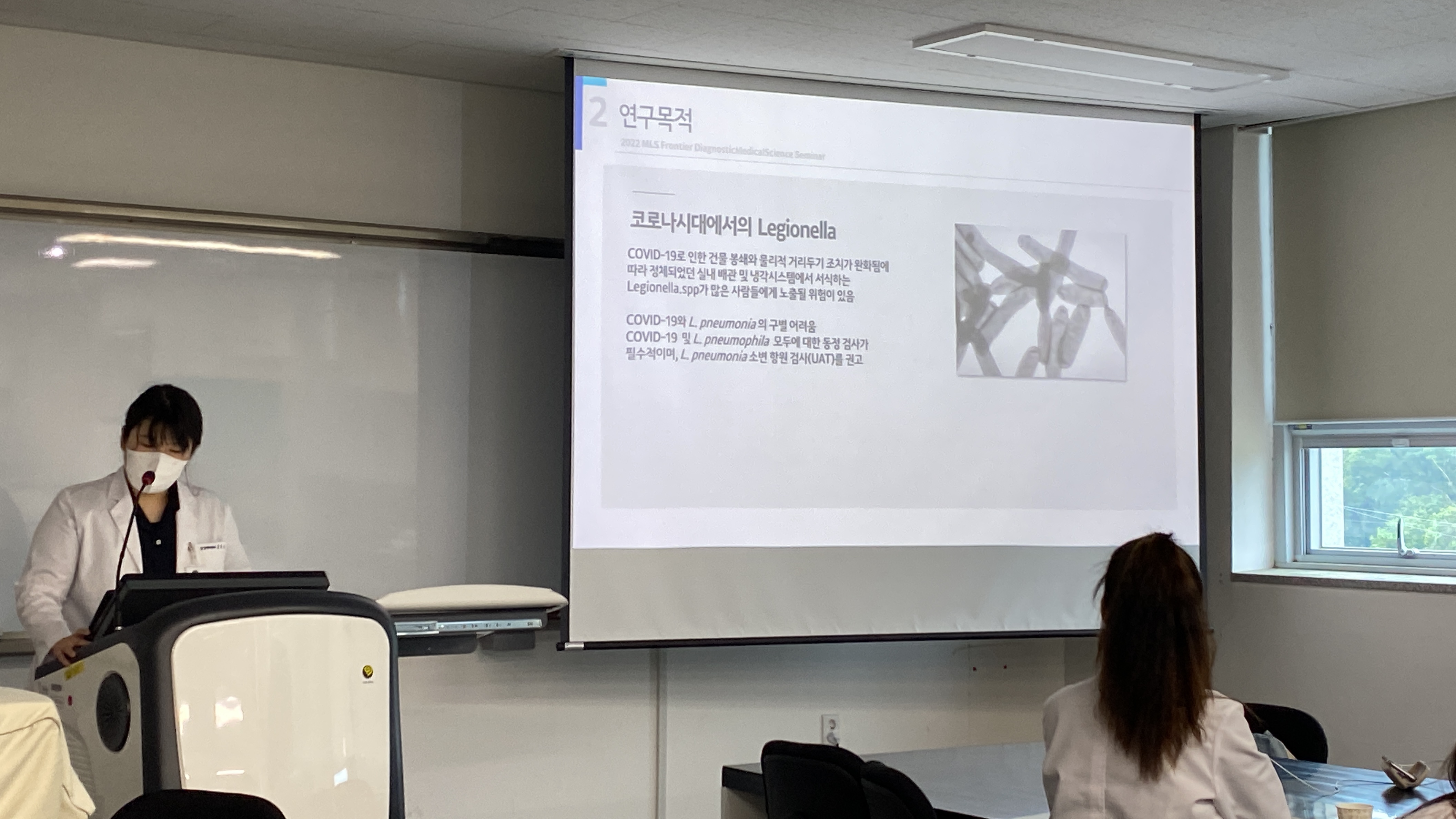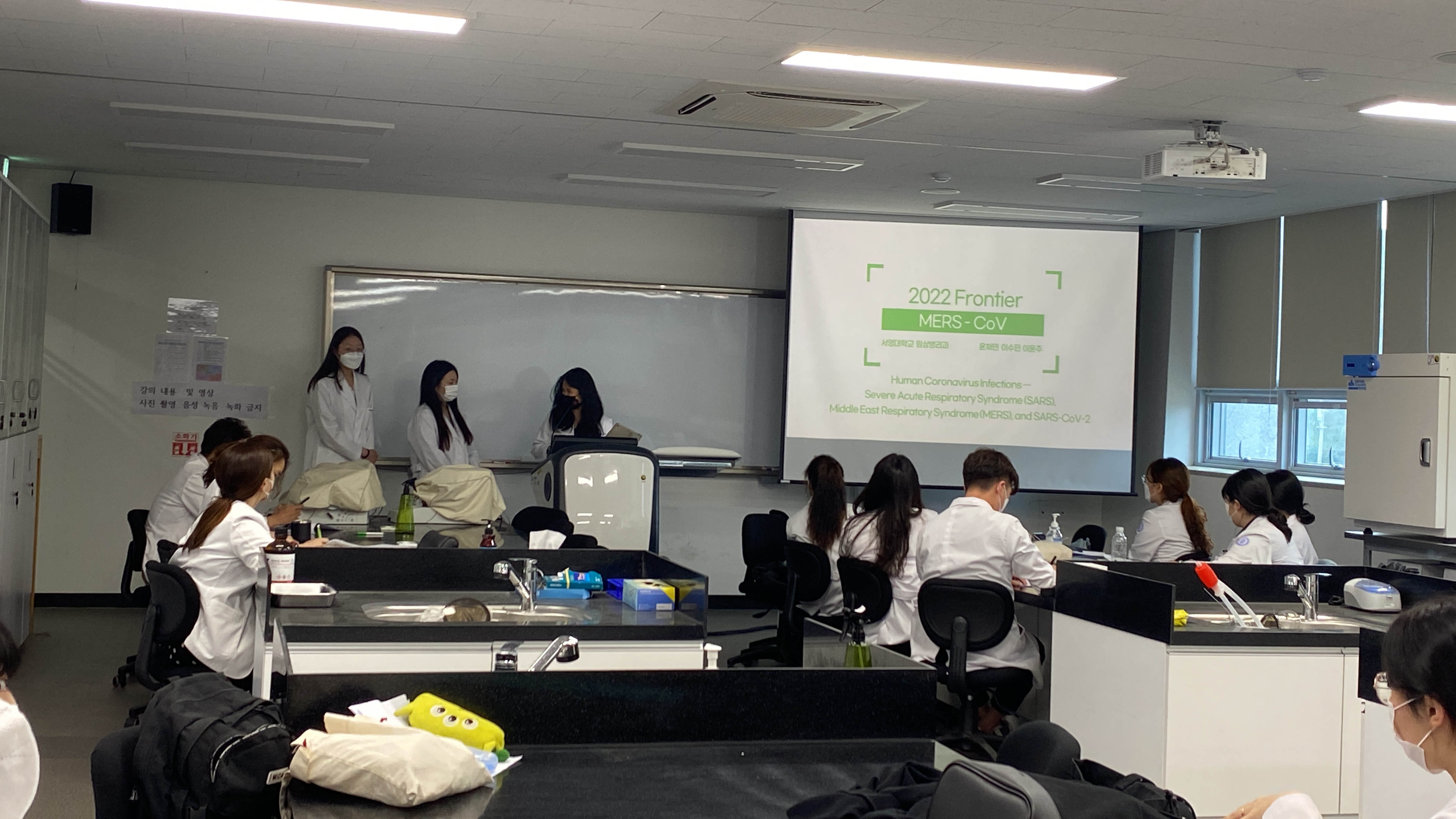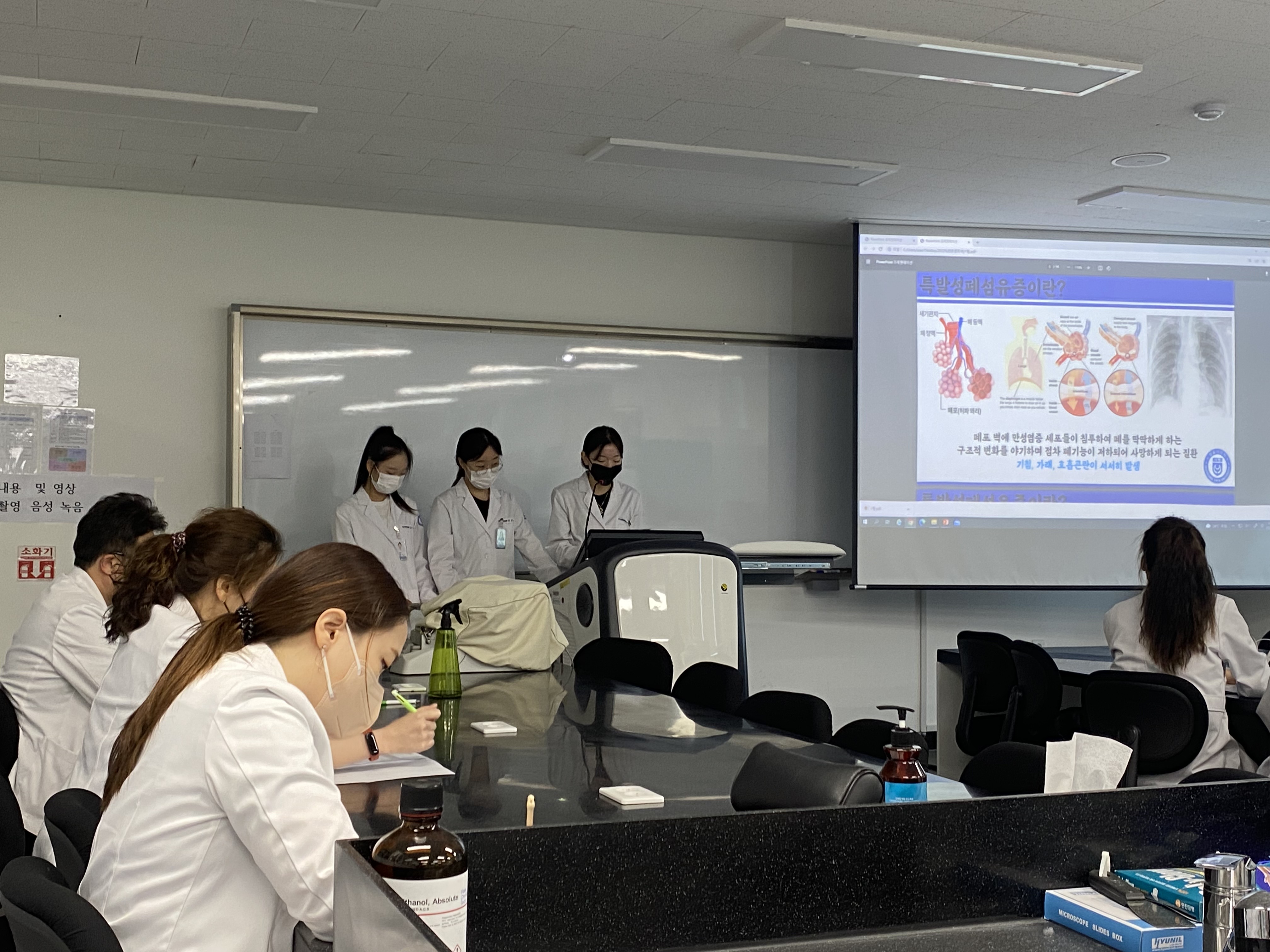 지난 5월 한 달 간, 우리 학과 2학년 재학생들을 대상으로 진행된 "제2회 프런티어 진단 의과학 세미나"가 성황리에 마무리되었다. 올해의 연구 주제로 선정된 "Diagnostic Approach to Respiratory Infectious Diseases"에 대하여 총 6개팀, 18명이 참가하여 다양한 호흡기 질환의 원인체 또는 병인론, 그리고 진단에 대한 연구 논문을 각 팀에서 선정하였고, 한 달 간의 연구 내용을 정리하여 발표하는 것으로, 지난 5/30일 학과 교수들이 참석하여 공개 심사를 진행하였다.