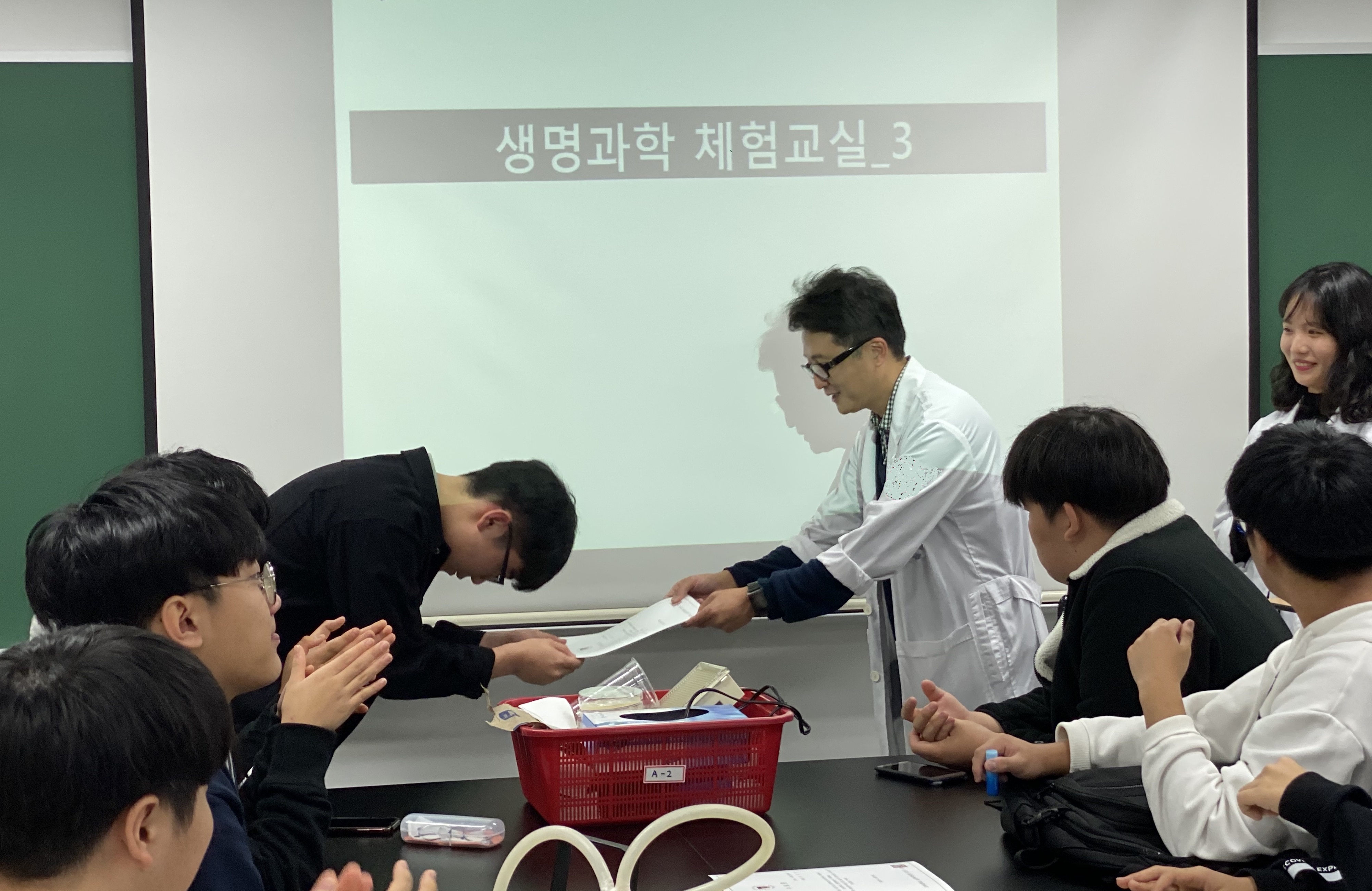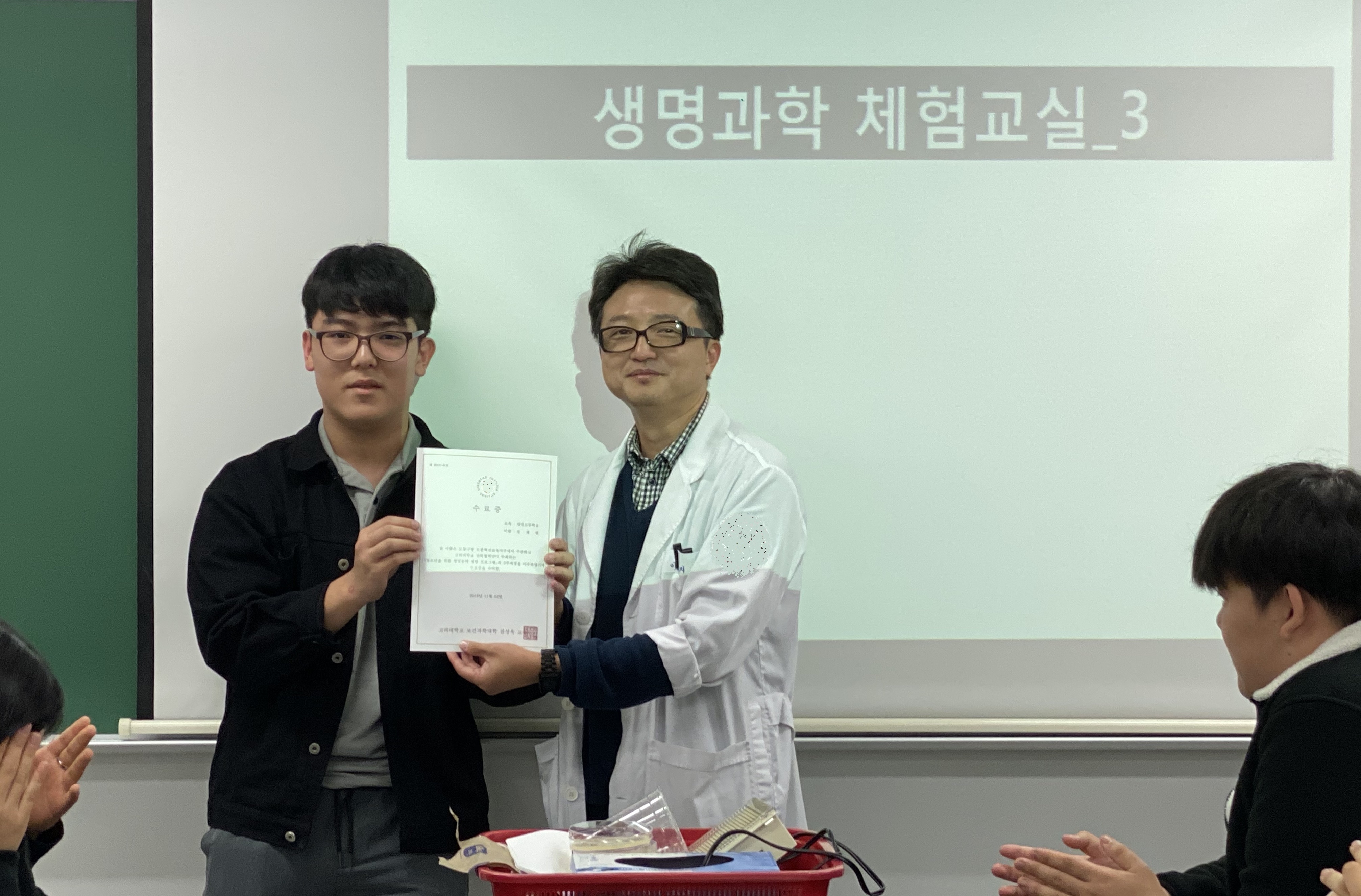 지난 11월 2일(토) 서영대학교 파주캠퍼스 임상병리과는 산학 협약을 맺은 고려대학교 분자진단연구회와 함께 서울시 도봉구 관내 6개 고등학교에서 130여명의 학생들이 참여한 가운데 도봉구와 함께하는 ‘생명과학체험교실’ 프로그램 총 3주차 과정을 성공적으로 마쳤다. 마지막 3주차 과정을 마치면서 3주 전과정을 수료한 학생들에게는 서영대학교 파주캠퍼스 임상병리학과장(이지웅)이 수료증을 전달하였다. 향후 서영대학교 파주캠퍼스 임상병리과와 고려대학교 분자진단연구회는 4차산업혁명 시대를 맞아 고등학생들의 과학적 사고를 높이기 위해 지속적으로 이 프로그램을 진행해 나갈 것이다.