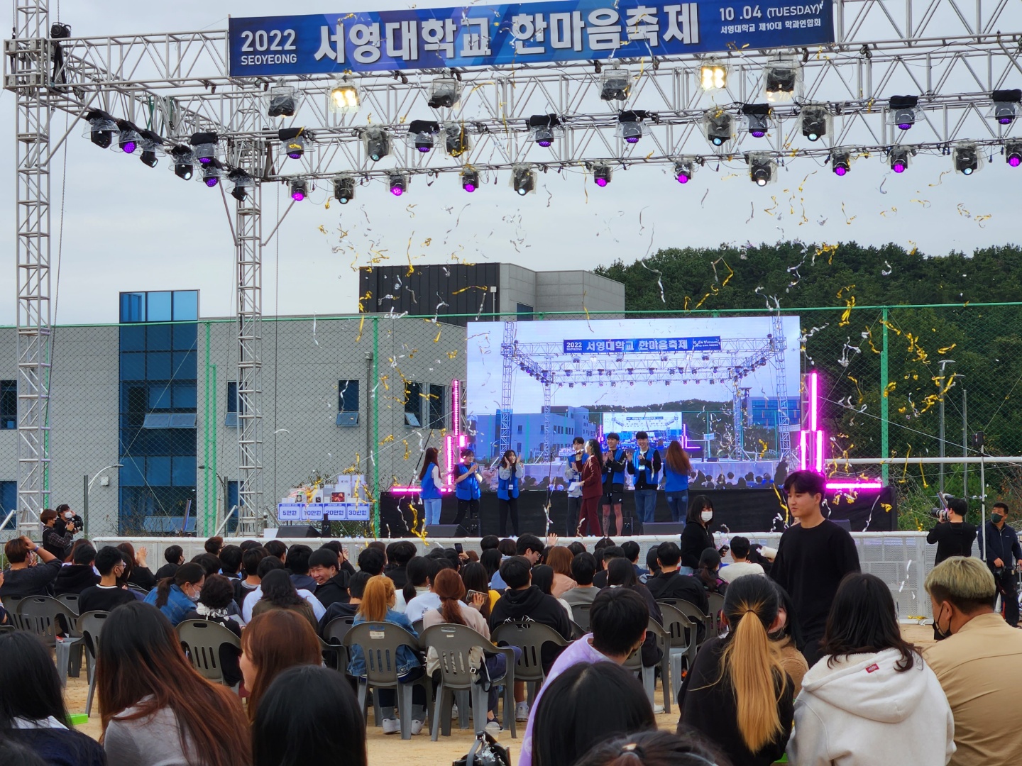 10월4일 화요일 <서영 한마음 축제>가 진행되었습니다!! 코로나로 인해 오랫만에 개최된 2022년 서영 한마음 축제에는 학생가요제와 공연에 많은 가수 분들이 함께해주셨습니다! 학생가요제에서는 “사회복지행정과 2학년 1반 홍성준 학생” 이 1등 우승을 하며 상금 300,000원의 쾌거를 이루었습니다. 2부 에서는 본격적으로 “미노이, 경서, 다이나믹듀오, 수퍼비&로얄44, 이예준, 김나희” 등 많은 가수들께서 공연을, MC는 개그우먼 박은영님이 맡아주시며 즐거운 행사가 진행되었습니다. 사회복지행정과, 치위생과, 뷰티아트과, 호텔관광과, 멀티미디어디자인과에서는 “설렘가득한향기, 구강healthup, 두피관리&헨드마사지체험, 호텔플레이스, 인생네컷 등 각 학과의 장점을 살린 부스를 준비하여 운영되었습니다. <서영 한마음 축제>를 준비하고 진행해준 사회복지행정과 학생회 여러분께 감사의 말씀을 전해드리며, 다음에도 더 즐거운 행사로 찾아뵙겠습니다!