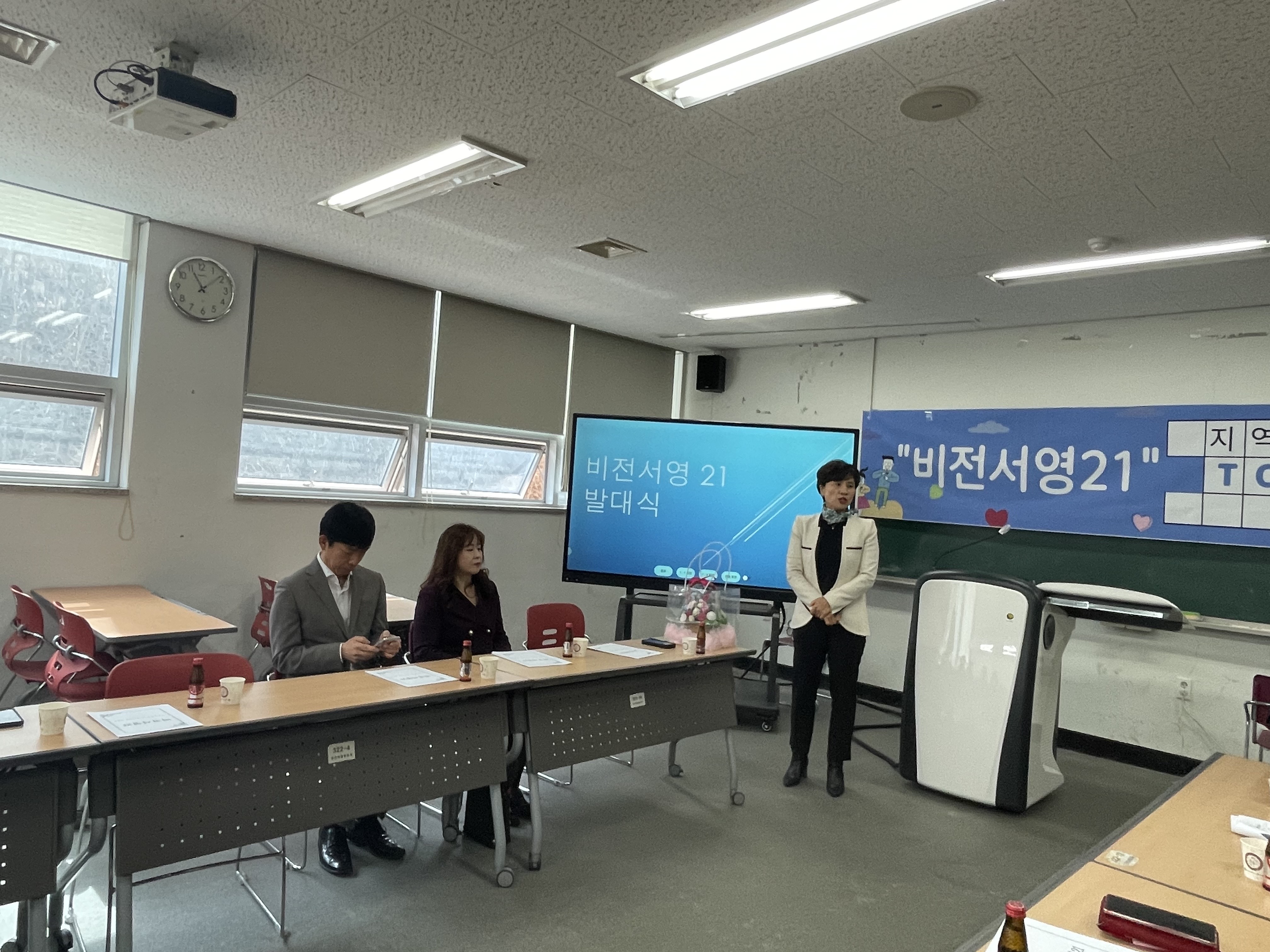 사회복지행정학과는 “서영비전21” 지역사회와 TOGETHER 나눠요 자원봉사활동 프로그램 일환으로 2023년 3월 18일(토) 발대식을 가졌다. ‘서영비전21’는 서영대학교 사회복지행정과 21학번 졸업생들을 대상으로 구성되어 발대식 및 지역사회와 TOGETHER 나눠요 자원봉사활동 프로그램의 시작을 알렸다. 이날 발대식에서는자원봉사활동의 목적, 조직구성, 활동 계획을 공유하는 시간을 가졌다. 이날 파주시운정종합복지관 이정호 관장님이 참석하여 ‘서영비전21’의 발대식 축하인사를 전했다. 파주시운정종합복지관과 서영비전21이 다양하고 폭넓은 자원봉사 활동을 통해 함께 이웃사랑을 실천할 수 있는 기회가 될 것이다. 이번 발대식을 시작으로 “서영비전21‘ 봉사단은 미술치료 상담 프로그램, 취미·여가 프로그램에 대한 전문적인 이론 교육을 토대로 자원봉사 프로그램을 개발과 더불어 다양한 재능기부 봉사활동을 전개할 예정이다.