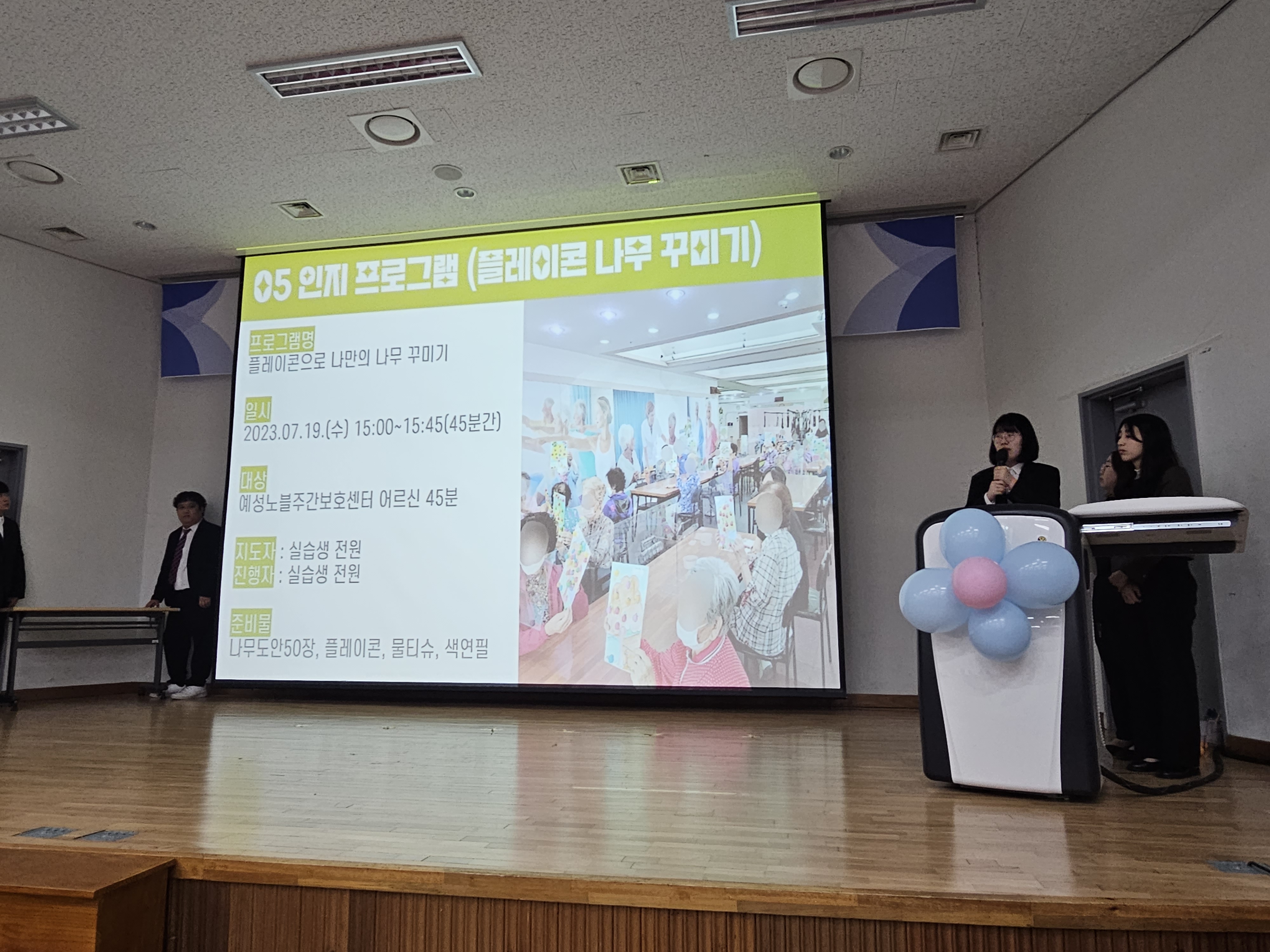 김순곤 부총장님의 축사와 김효선 학과장님의 격려사를 시작으로 현장에서 활약하고 있는 동문 선배들의 응원의 마음을 전하는 시간을 가졌습니다. 이어 학술보고행사로 2학년 학생들의 사회복지사 선서, 사회복지실습 발표, 보육실습 발표 등이 진행되었으며 경기도콘텐츠진흥원에서 수상한 1학년 학술팀의 프로포절 발표가 진행되었습니다.
