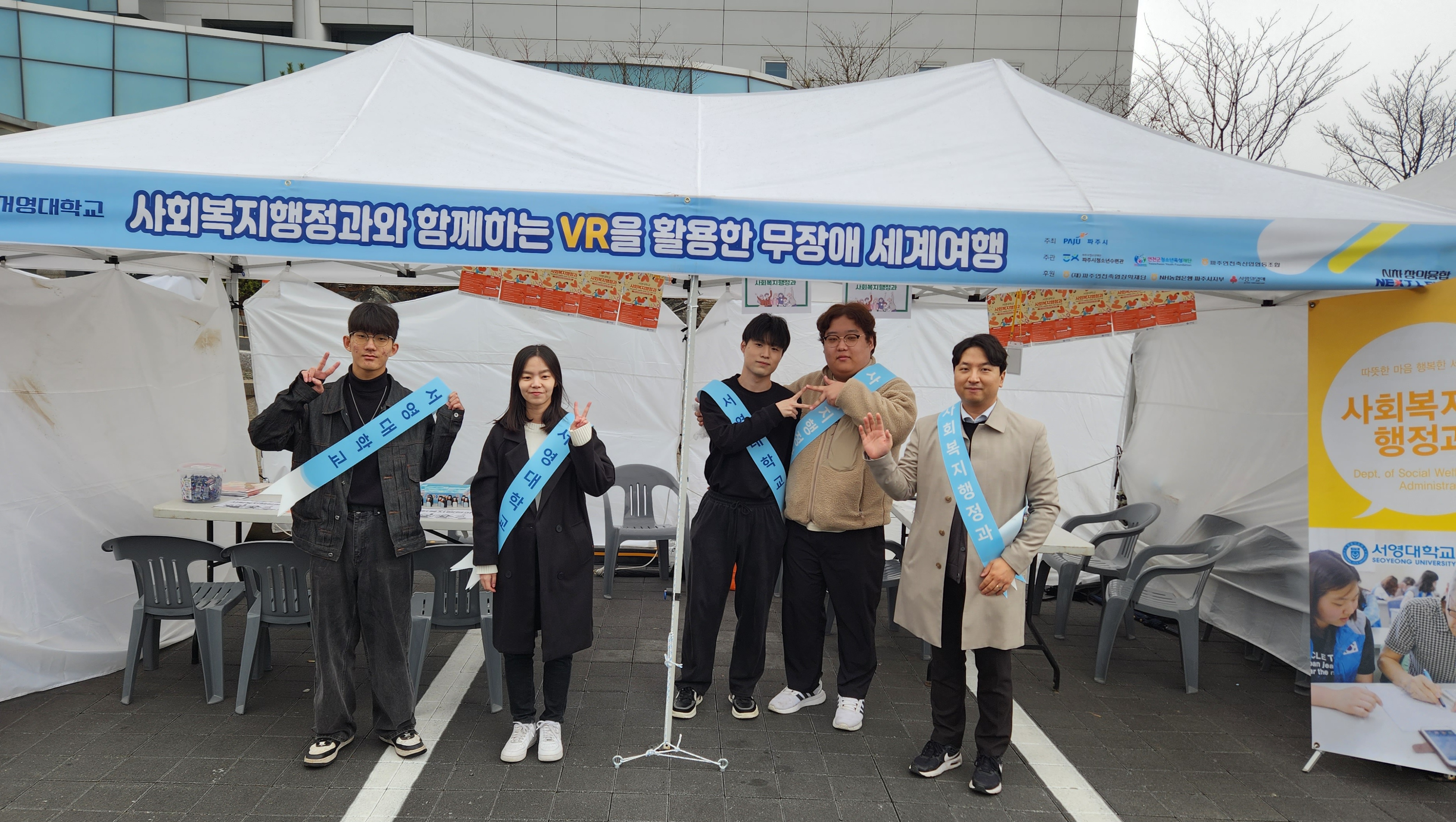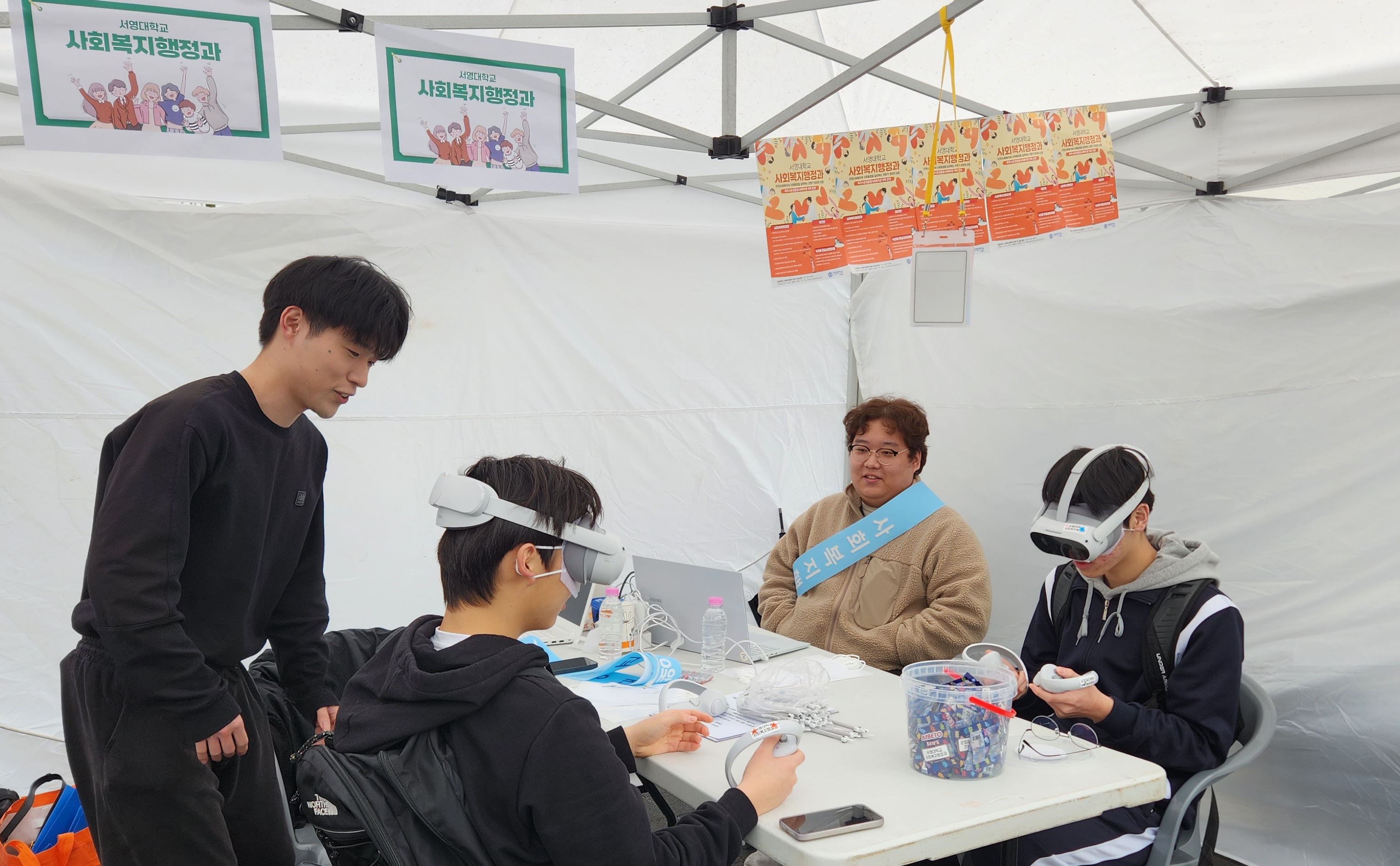 안녕하세요 서영인 여러분! 지난 3월 29일 금요일에 파주시 청소년 수련관에서 진행된 지역축제에 저희 서영대학교 사회복지행정과 재학생들이 참여하였습니다! 해당 축제는 파주시, 연천군 청소년들을 대상으로 4차산업혁명과 "N차 넥스트레벨"이라는 주제로 다양한 첨단 기기를 활용한 참여형 축제가 진행되었습니다. 저희 사회복지행정과는 VR기기를 이용한 무장애 세계여행 컨텐츠와 보드게임을 이용한 레크레이션을 진행하였습니다.
