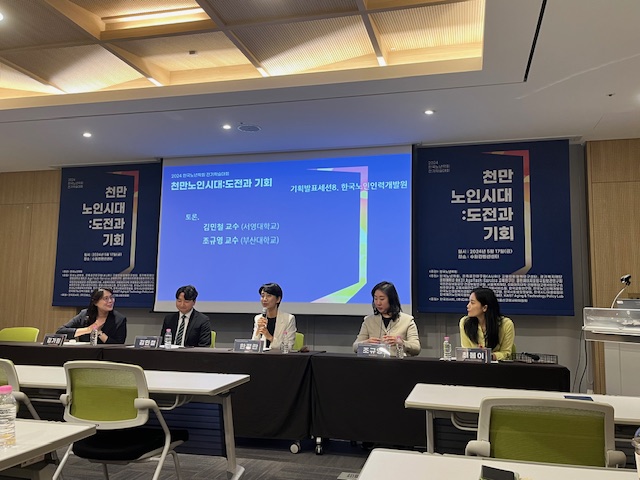기획발표세션으로 천만 노인시대, 노인일자리 사업의 나아갈 방향이라는 주제로 이루어진 노인일자리 종사자 직무기반 교육,훈련 방안: DACUM 직무분석 발표에 대한 토론자로 김민철 교수님께서 참석하셨습니다.