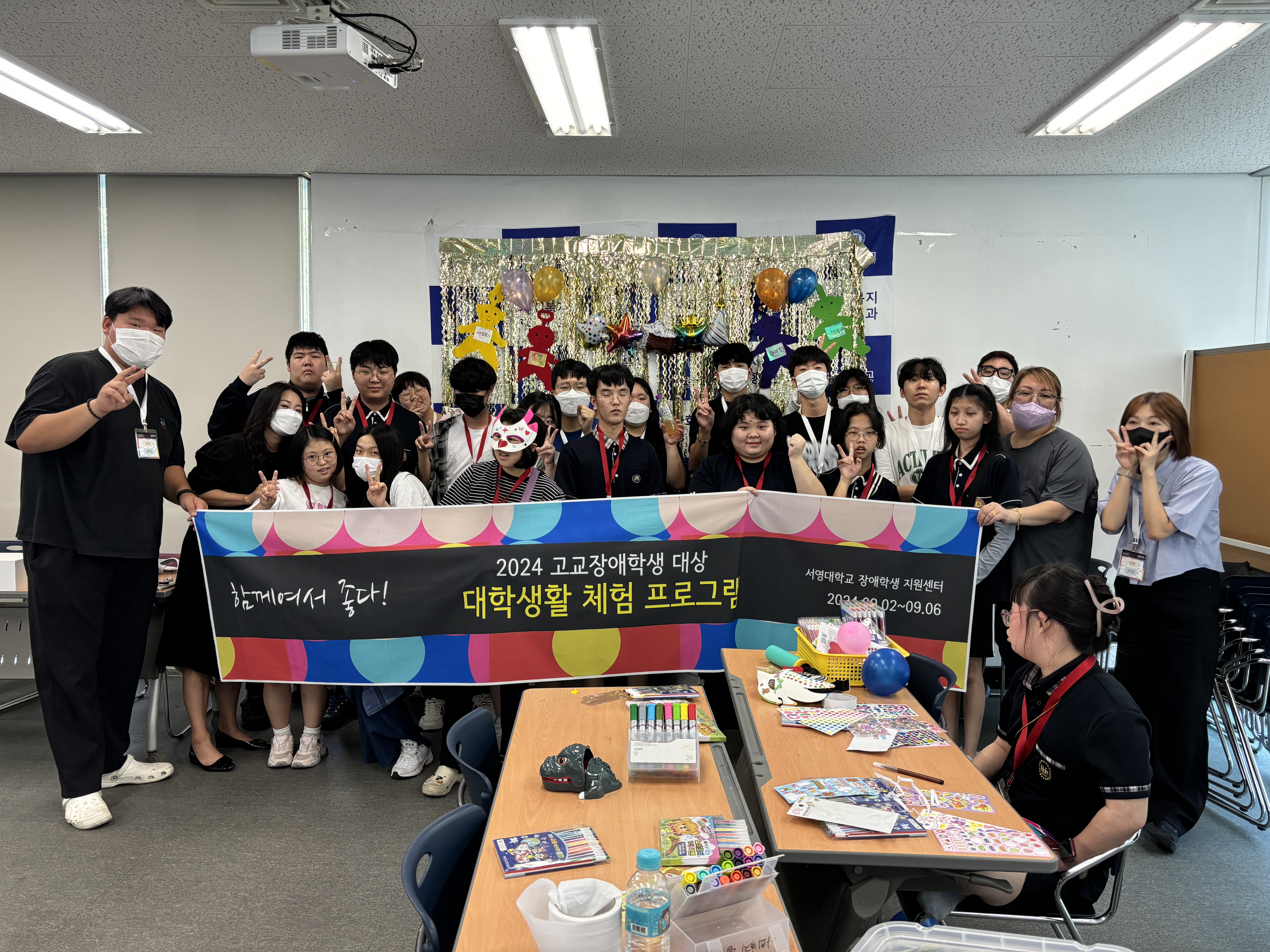 O. 사회복지행정과(학과장 김효선)은 9월2일(월)부터 9월6일(금)까지 ‘2024 고교 장애학생 대상 대학생활 체험 프로그램’ 을 운영하였다. ‘2024 고교 장애학생 대학생활 체험 프로그램’은 교육부 지원 대학생활 체험 프로그램으로 장애 고등학생들이 미리 대학생활 체험을 통해 안정적으로 적응 할 수 있는 기회를 제공하기 위해 마련된 프로그램이다. 이번 체험프로그램에는 백신고, 주엽고, 홀트학교에 재학 중인 학생들과 학교 관계자들이 참여하였다.