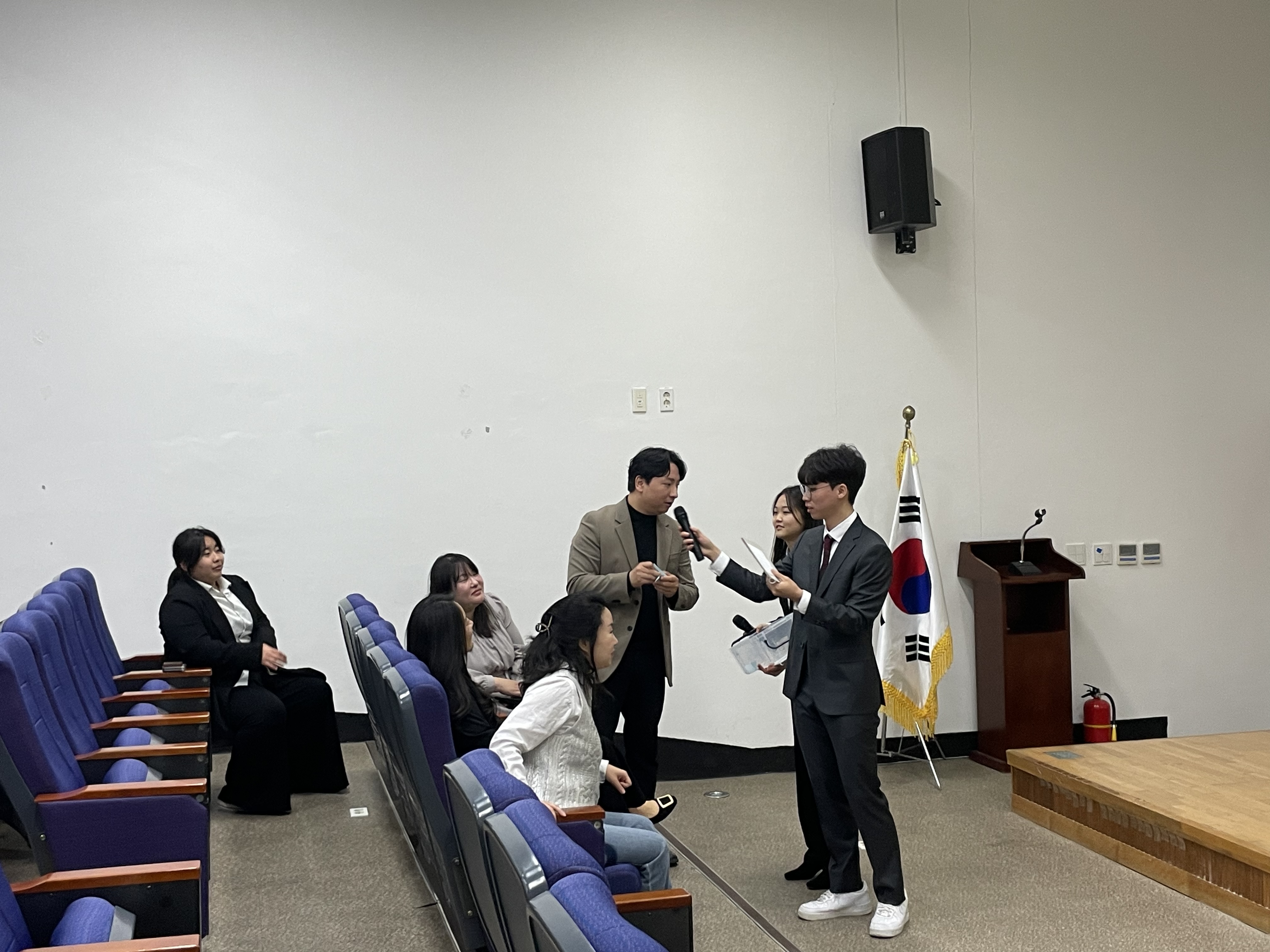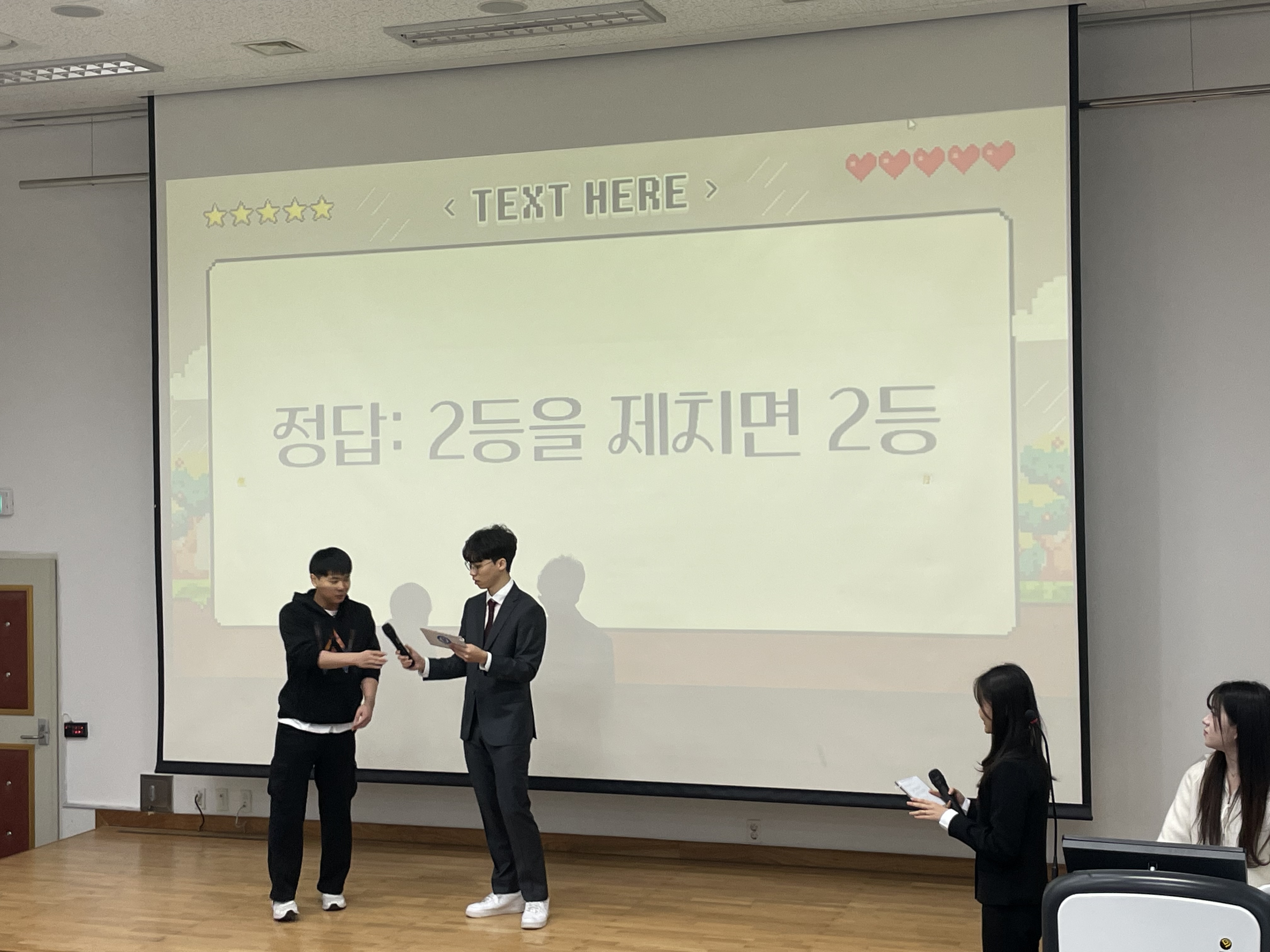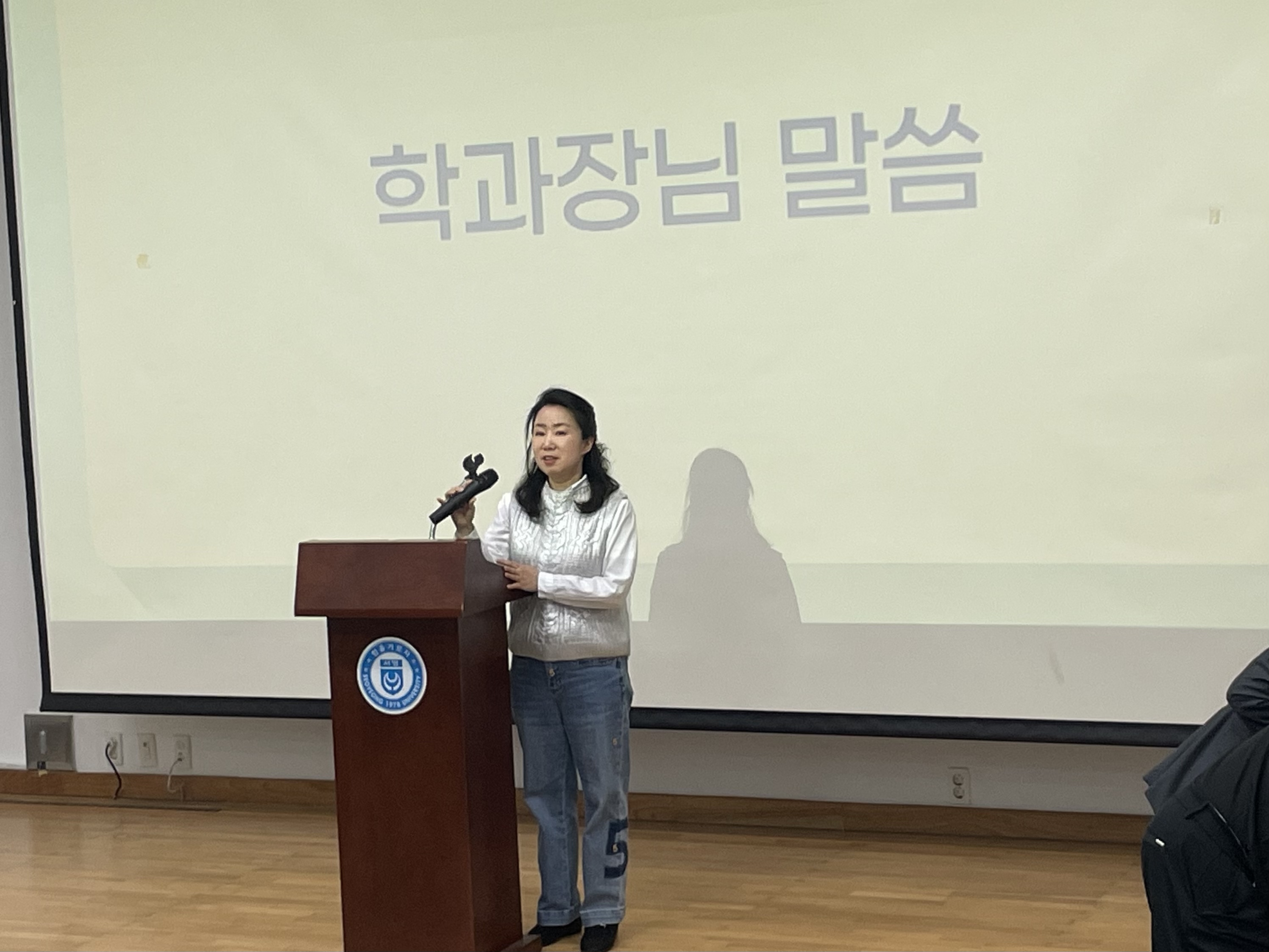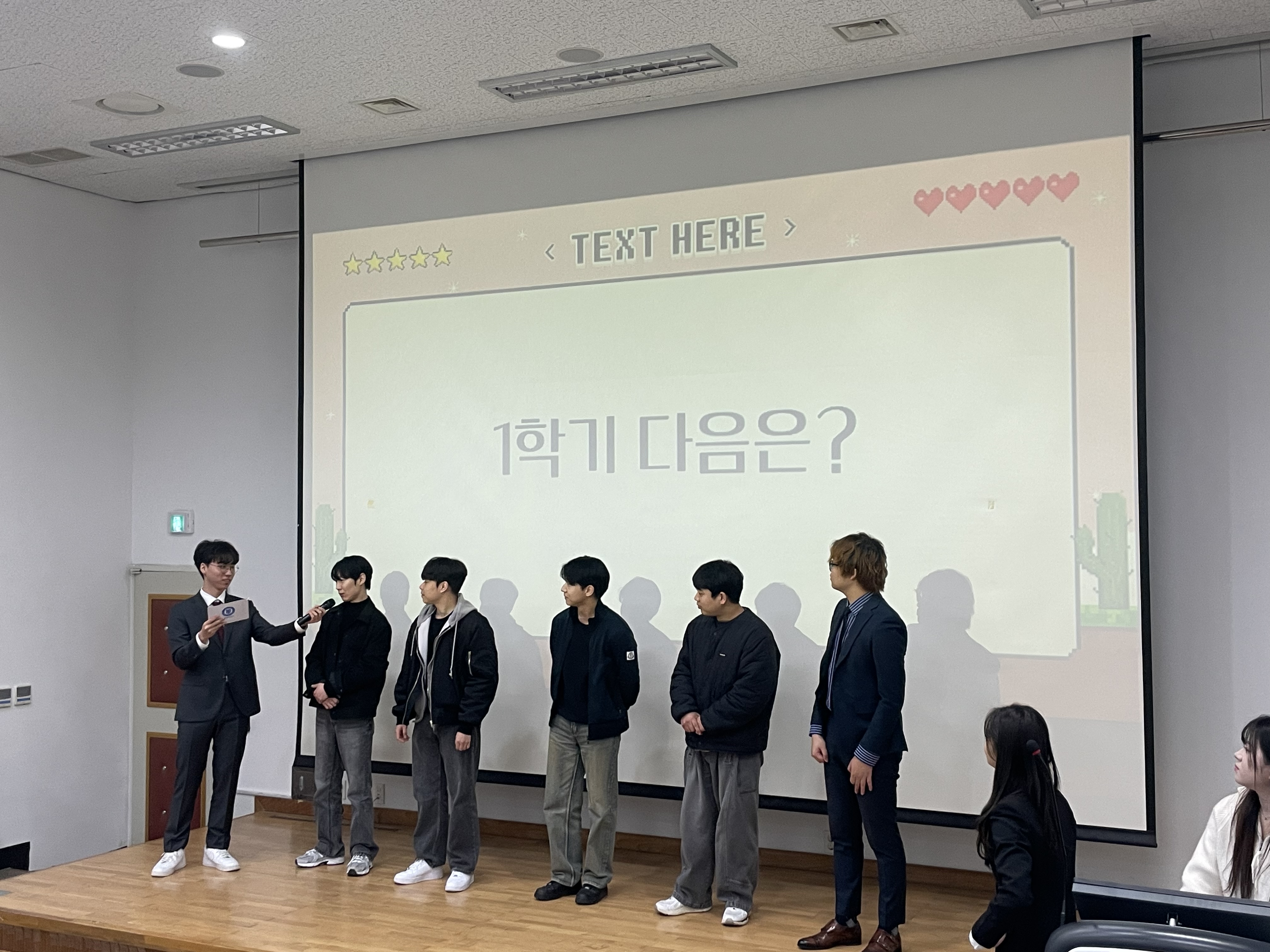 대면식은 김효선 학과장님의 말씀과 교수님들의 소개를 시작으로, 학생회 소개 및 친목을 다지는 레크리에이션 활동까지 다채롭게 진행되었습니다. 특히 교수님들께서 마련해 주신 다양한 상품 덕분에 더욱 즐겁고 의미 있는 시간이 되었습니다.