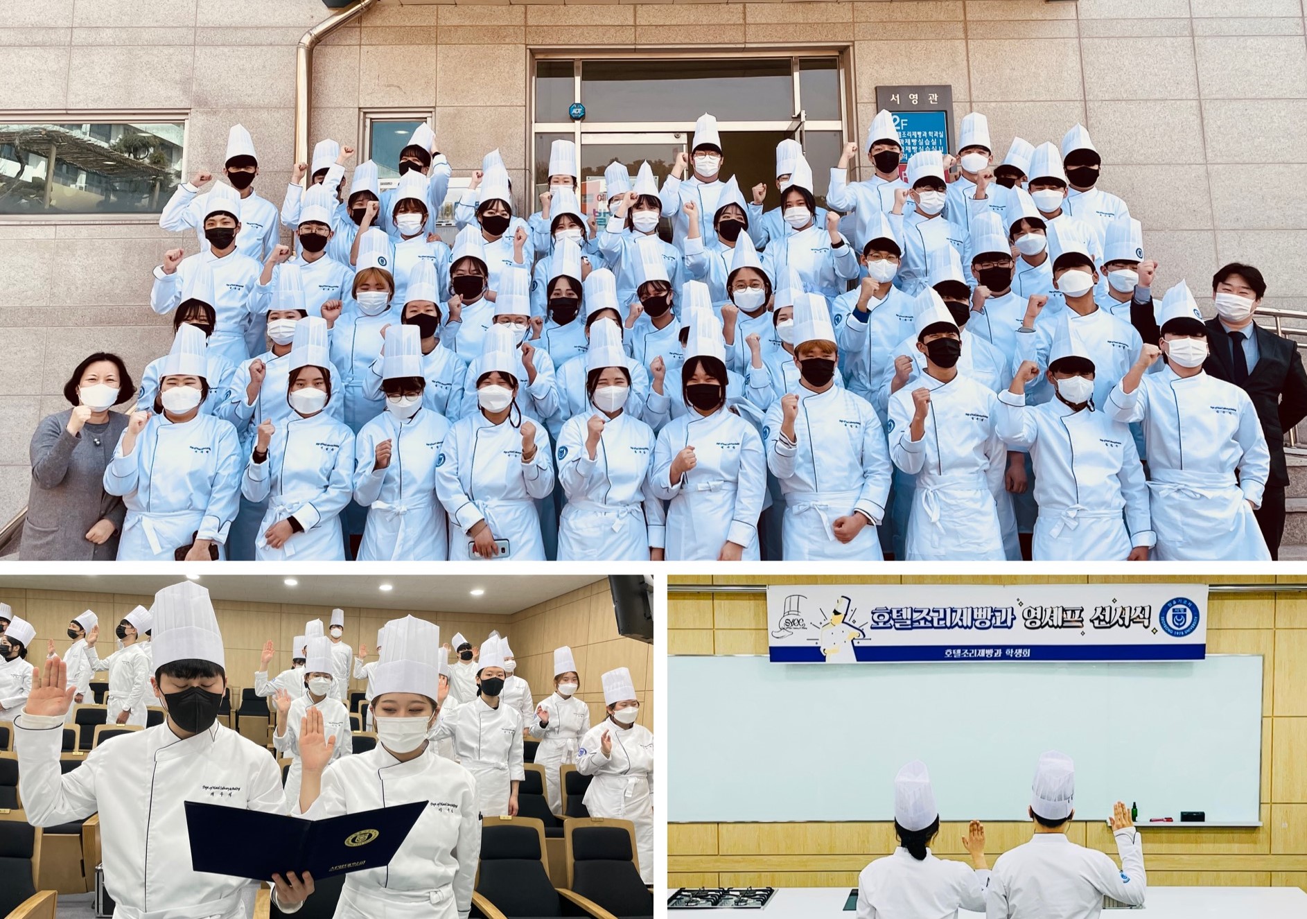 ○ 호텔조리제빵과 신입생 57명을 대상으로 예비전문쉐프로서 갖춰야 할 마음가짐과 자세를 바로잡아 학과에 대한 자긍심을 높이고 직업에 대한 사명감을 함양하는 ‘2021학년도 호텔조리제빵과 영쉐프 선서식’을 23일 개최했다.