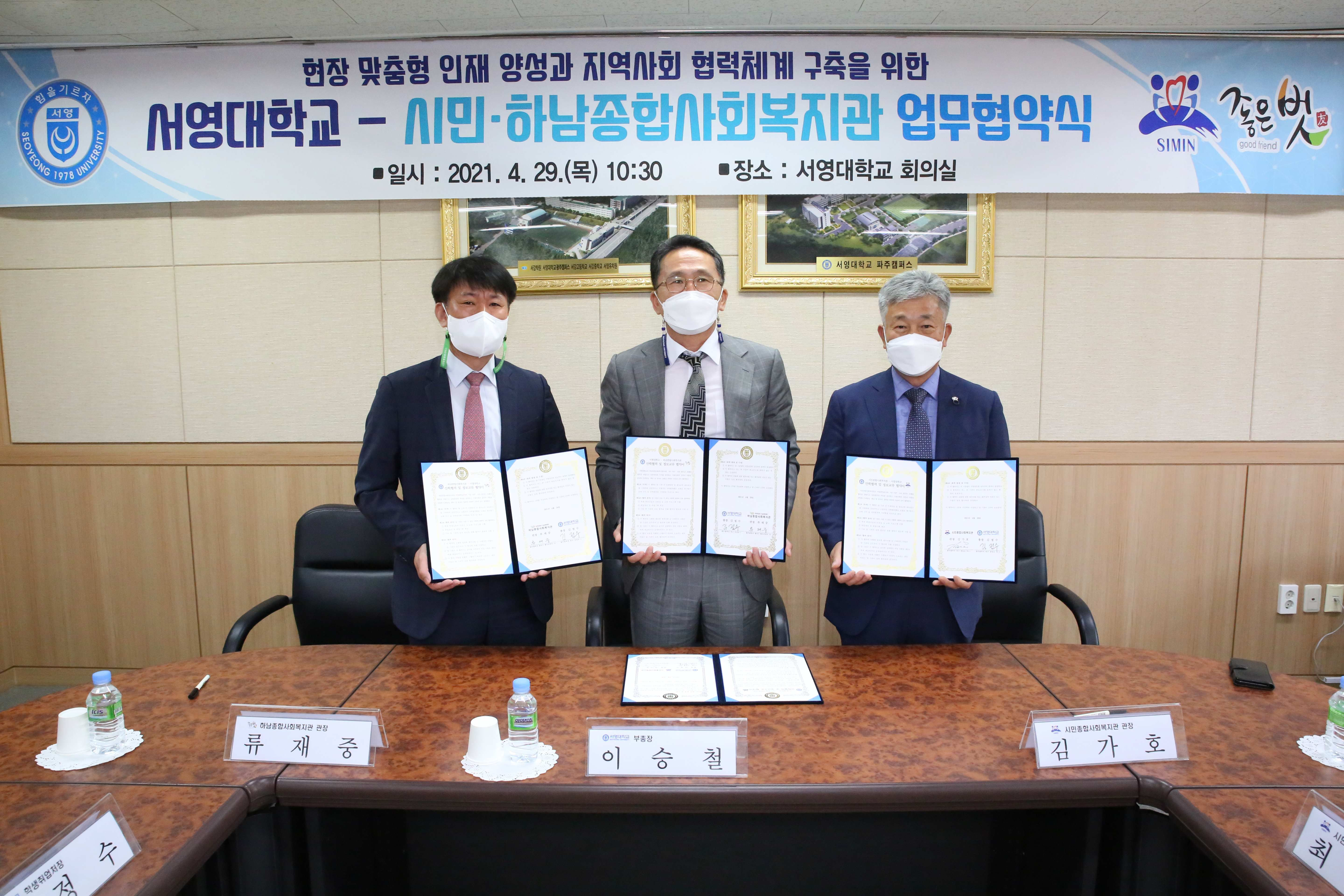 ○ 서영대 이승철 부총장은 “시민종합사회복지관과 하남종합사회복지과는 지역주민과 함께하는 다양한 사회복지사업을 추진하며 복지공동체 실현에 기여하고 있다.”며 “오늘 협약이 서로 간의 연대와 화합의 튼튼한 뿌리가 되어 각 기관의 발전과 번영으로 이어지길 바란다.”고 말했다.