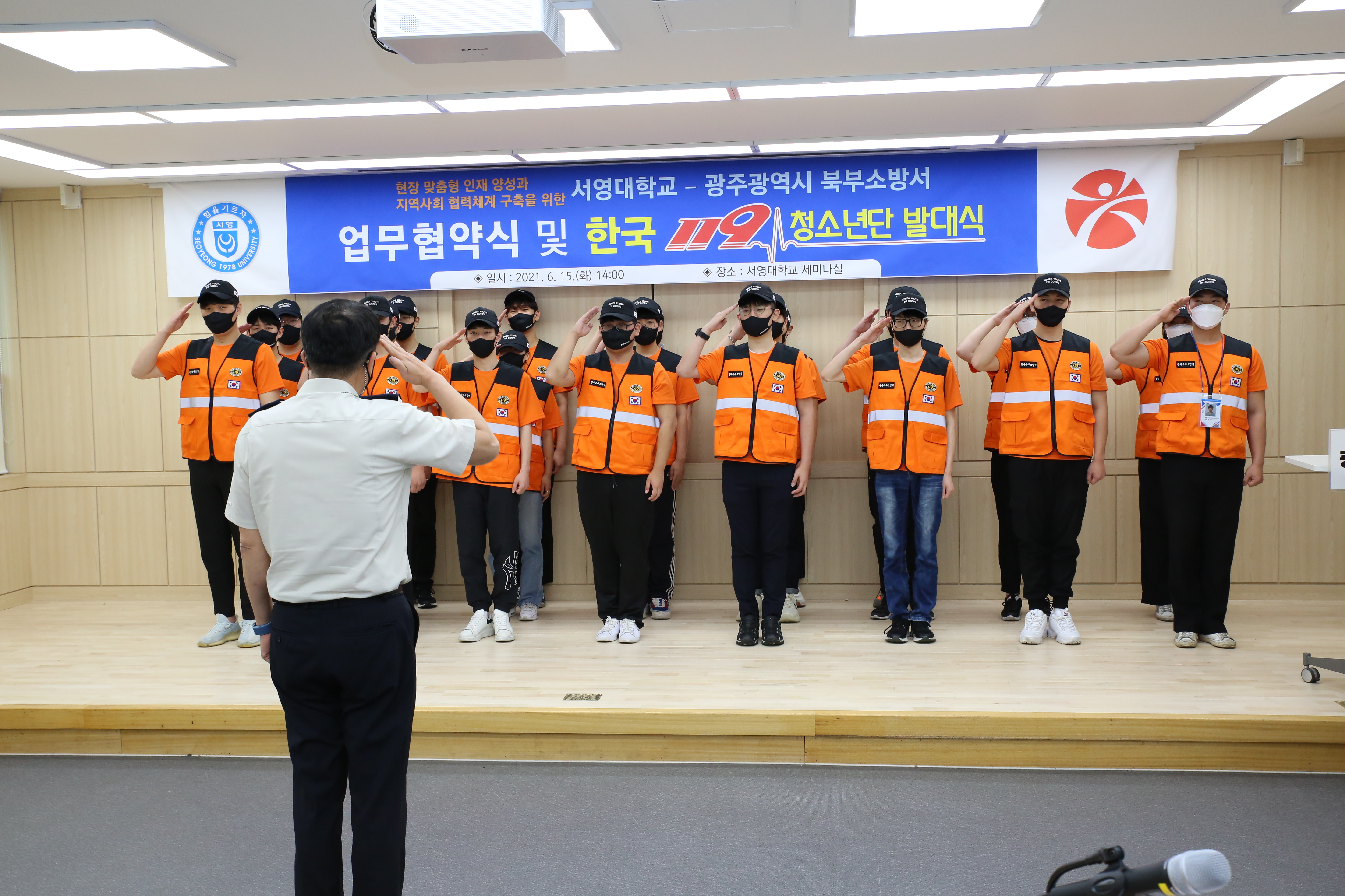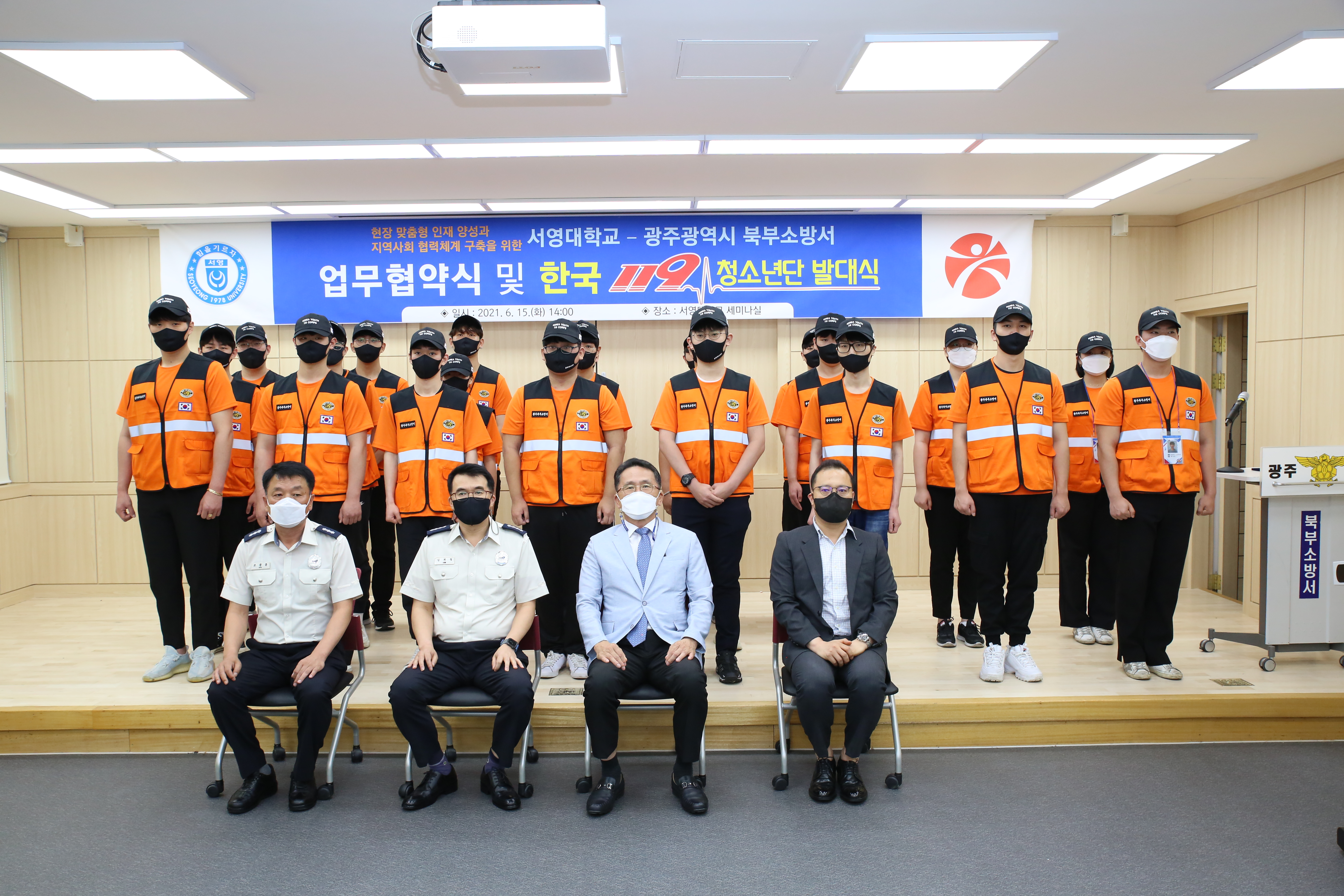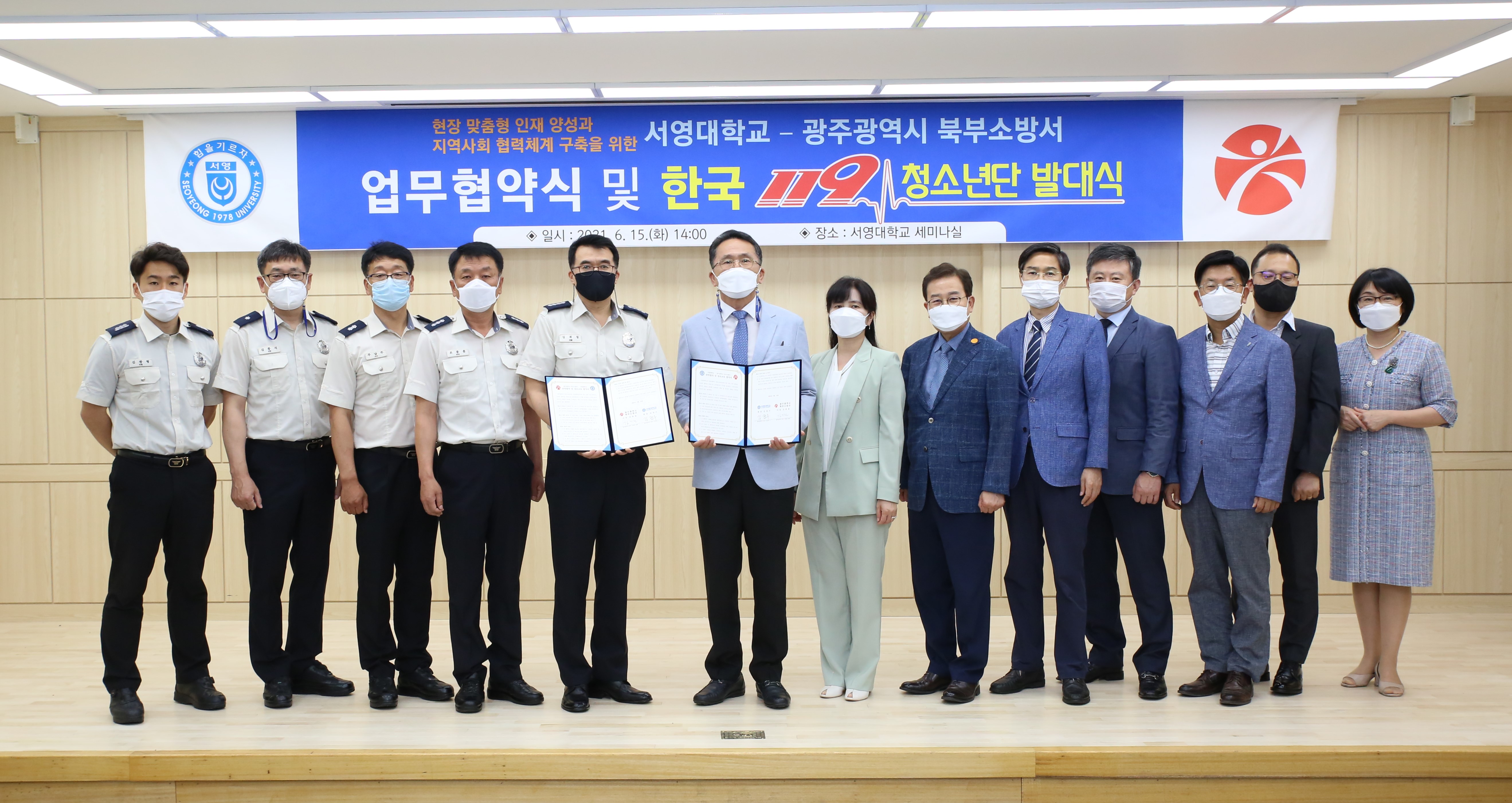 ○ 서영대학교와 광주 북부소방서가 소방방재 및 재난 전문인력 양성을 위한 ‘업무협약식 및 한국119청소년단 발대식’을 가졌다.