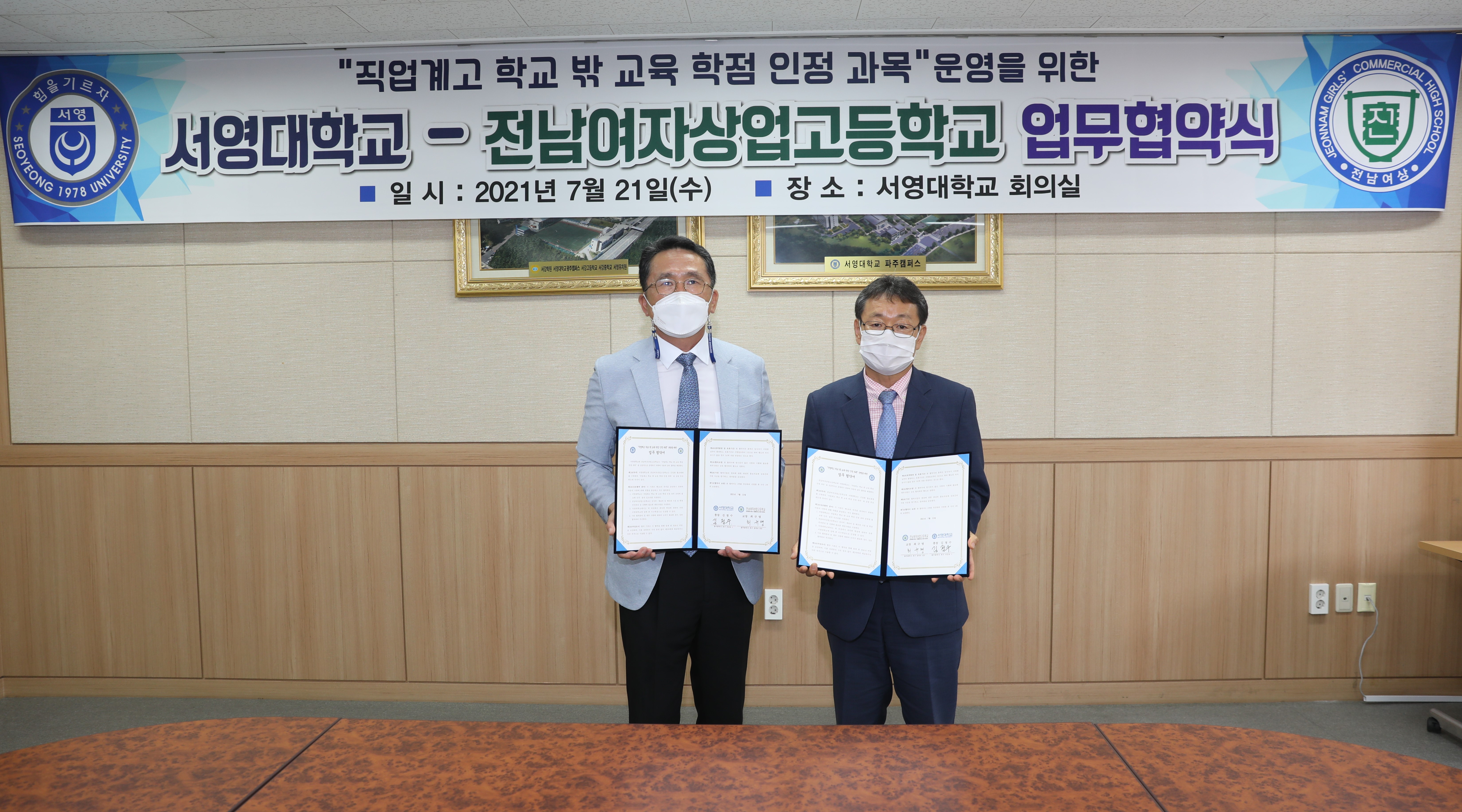 ○ 서영대학교와 전남여자상업고등학교는 직업계고 ‘학교 밖 교육’의 학점 인정 과목을 성공적으로 운영하기 위해 업무협약을 체결했다.