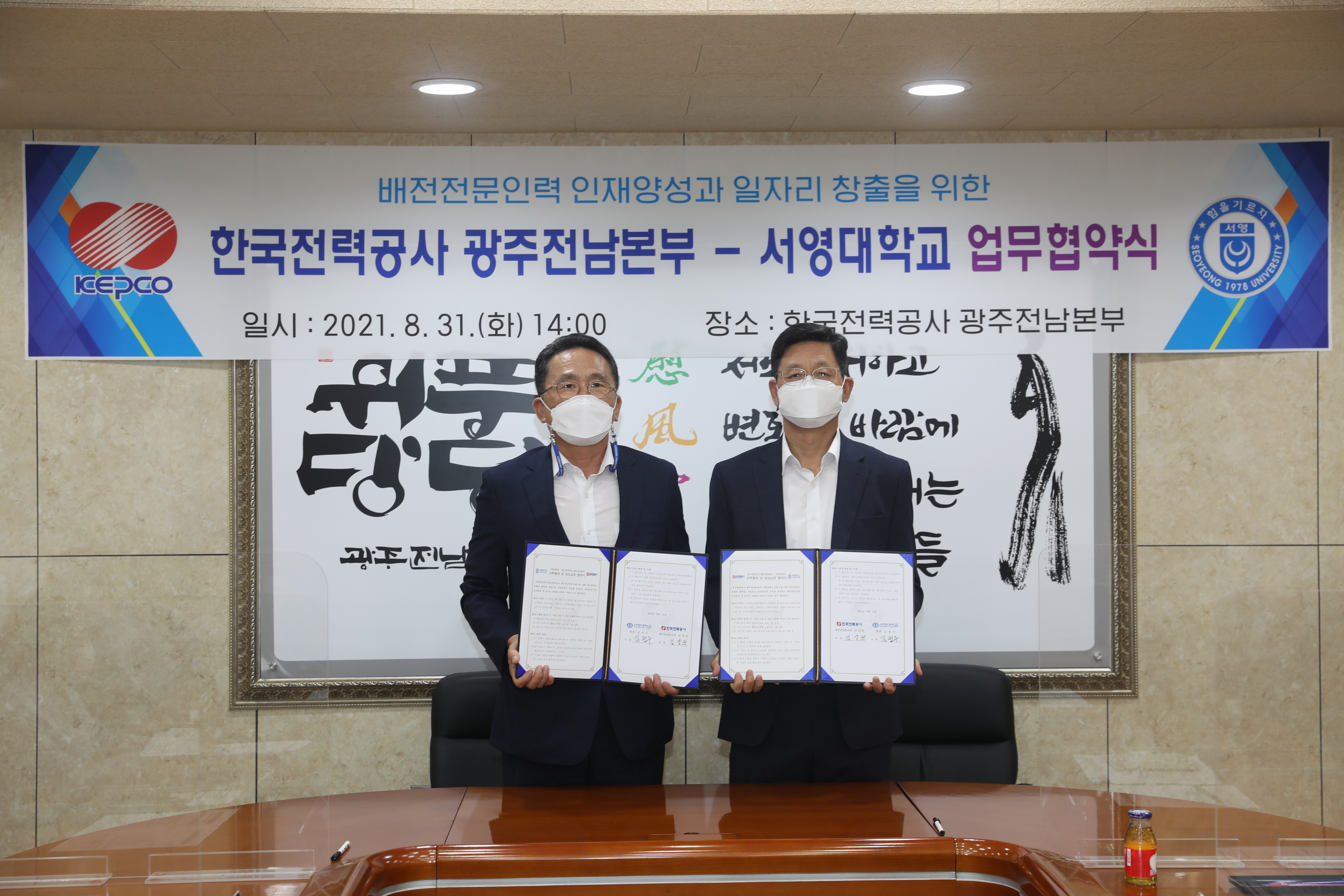 ○ 서영대학교 전기과는 학생들의 취업역량 강화와 취업기회 확대를 위해 한국전력공사 광주전남본부와 산학협력 업무협약을 체결했다.
