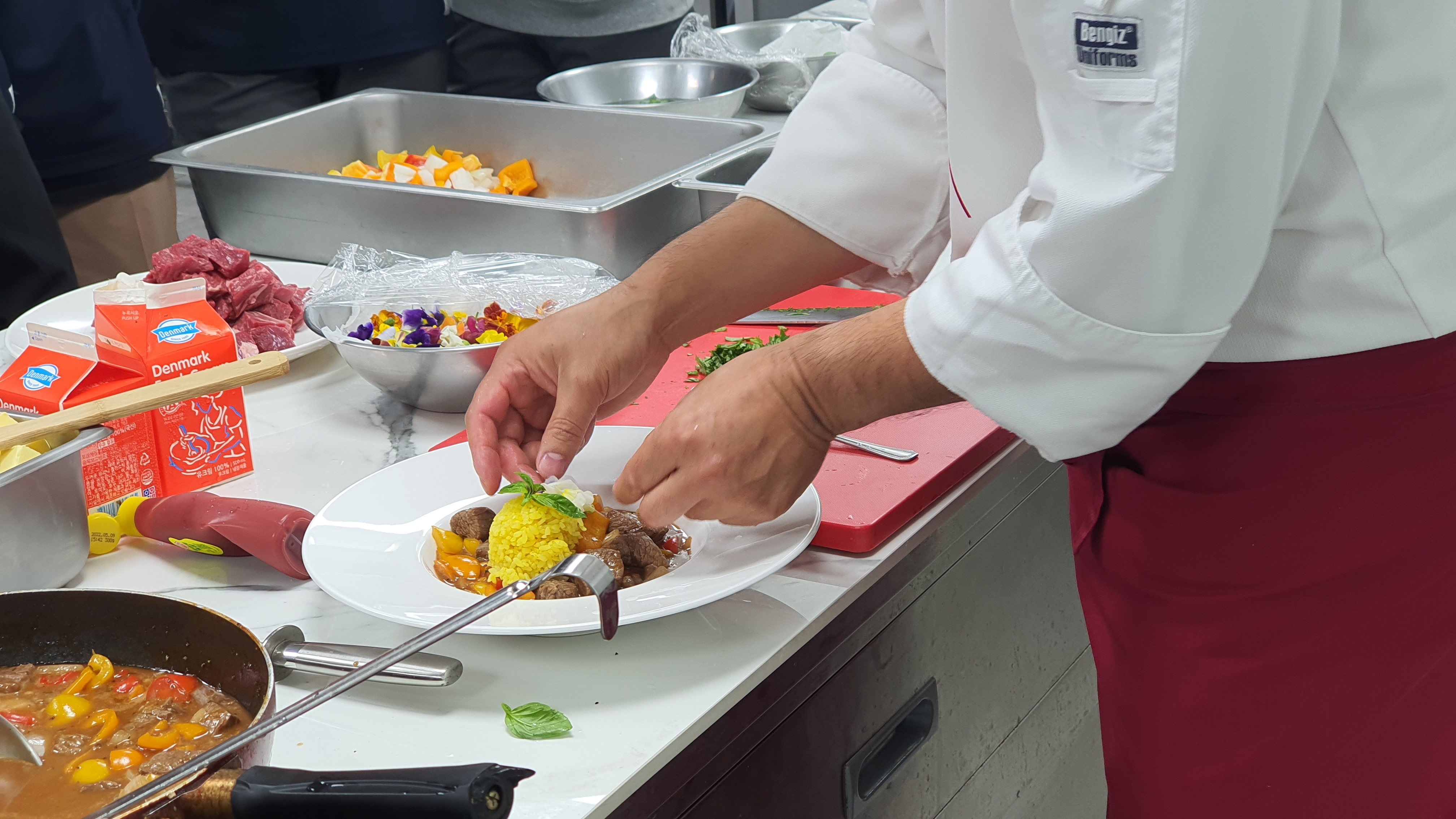 0. 본 행사는 우리대학과 문산제일고등학교간 상호협력업무협약 체결 이후 전공학과 고등학생들의 연계학과 학과탐방과 실습 체험을 통해 자신의 적성과 진로, 진학을 탐구하기위해 식품가공과 3학년 학생 30여명이 참석 하여 조리실습 및 견학, 학과 설명등 실체적인 프로그램으로 성황리에 진행 되었다.