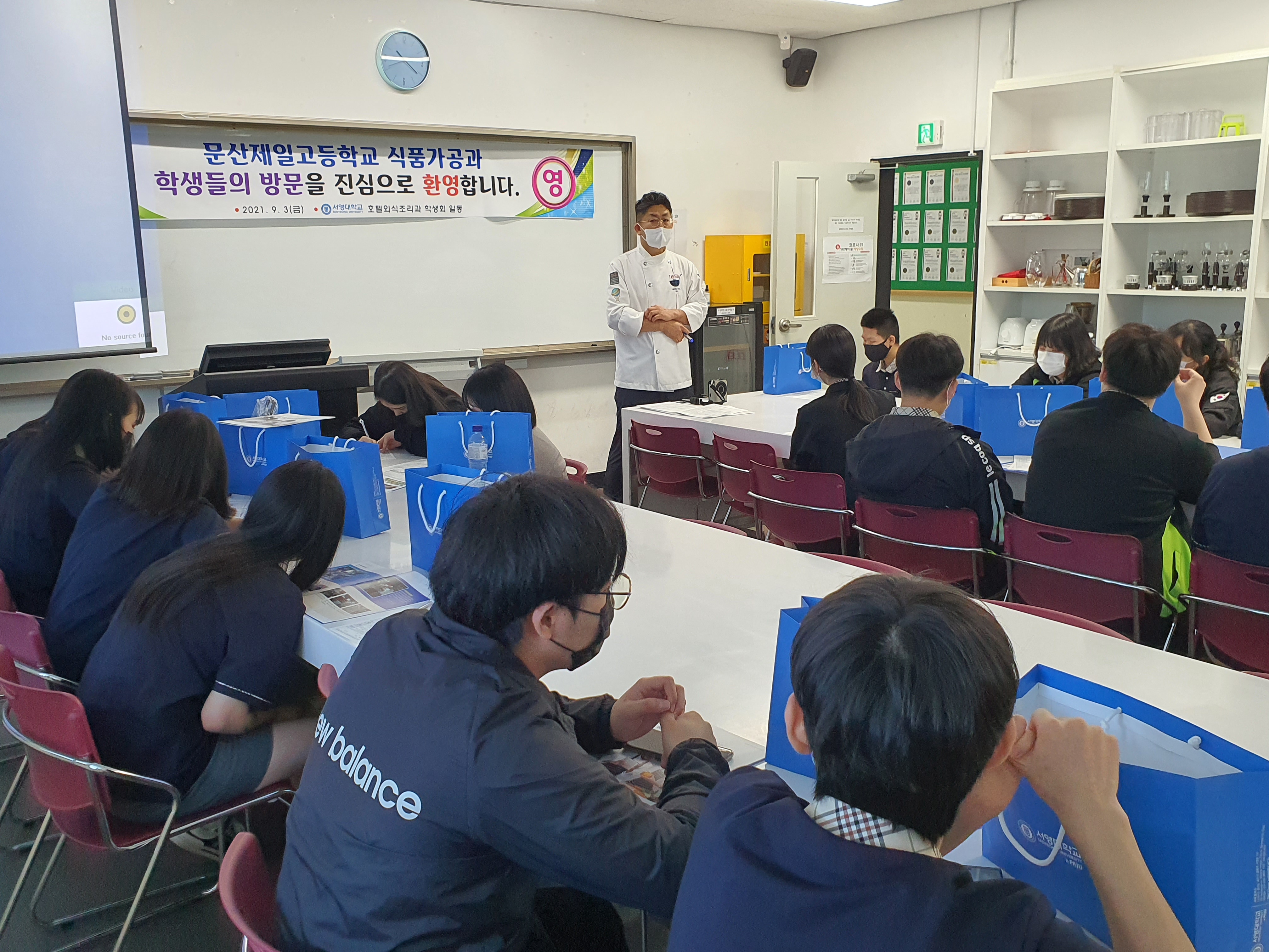 0. 우리대학 호텔외식조리과 ( 학과장 김장호 교수)는 9월 3일 문산제일고(교장 류종수) 식품가공과 3학년 학생들이 방문하여 학과탐방을 진행 하였다.