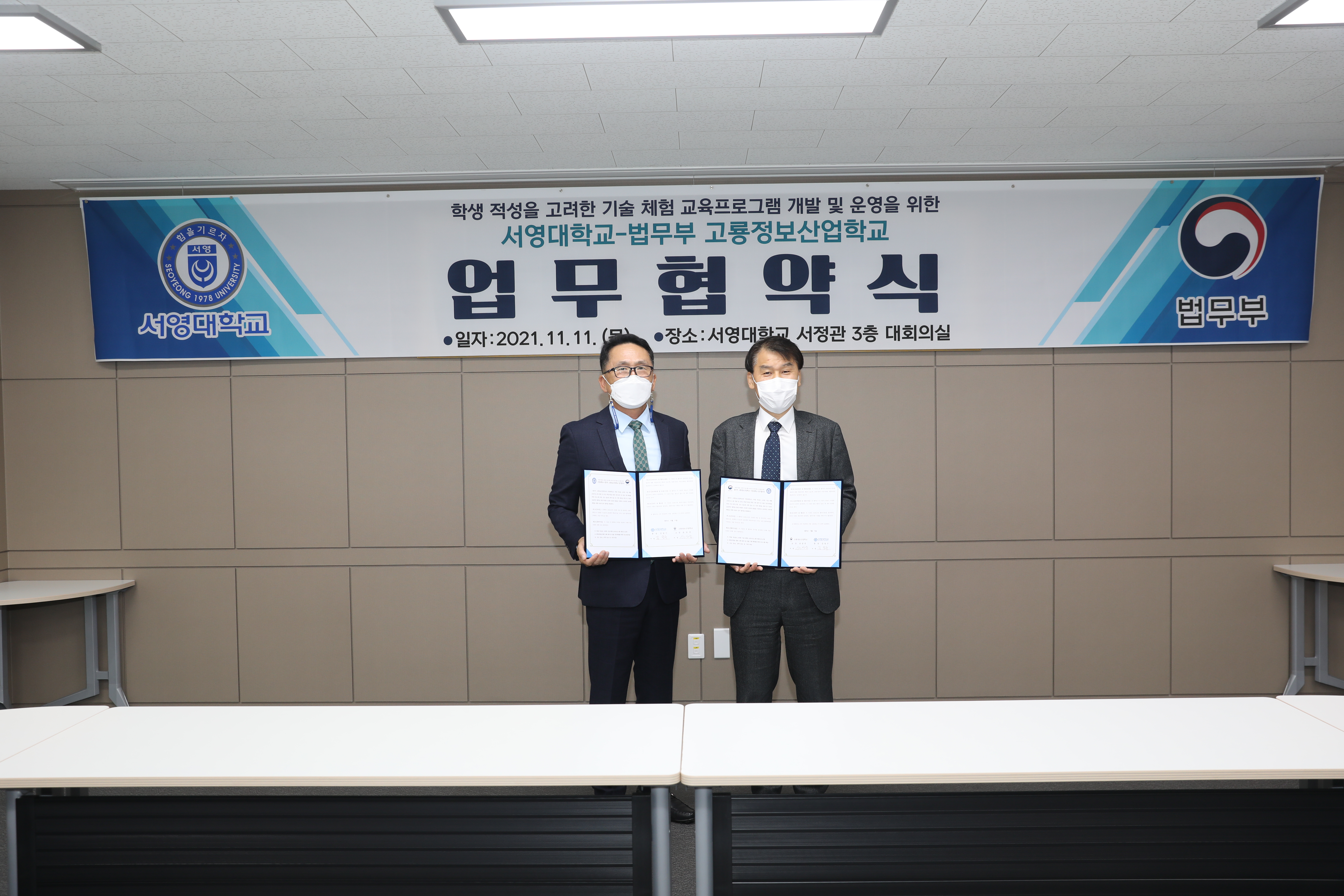 ○ 서영대학교와 법무부 고룡정보산업학교(광주 소년원)가 학생의 건전한 성장과 발달을 지원하고 효과적인 재비행 예방을 위해 업무협약을 11일 체결했다.