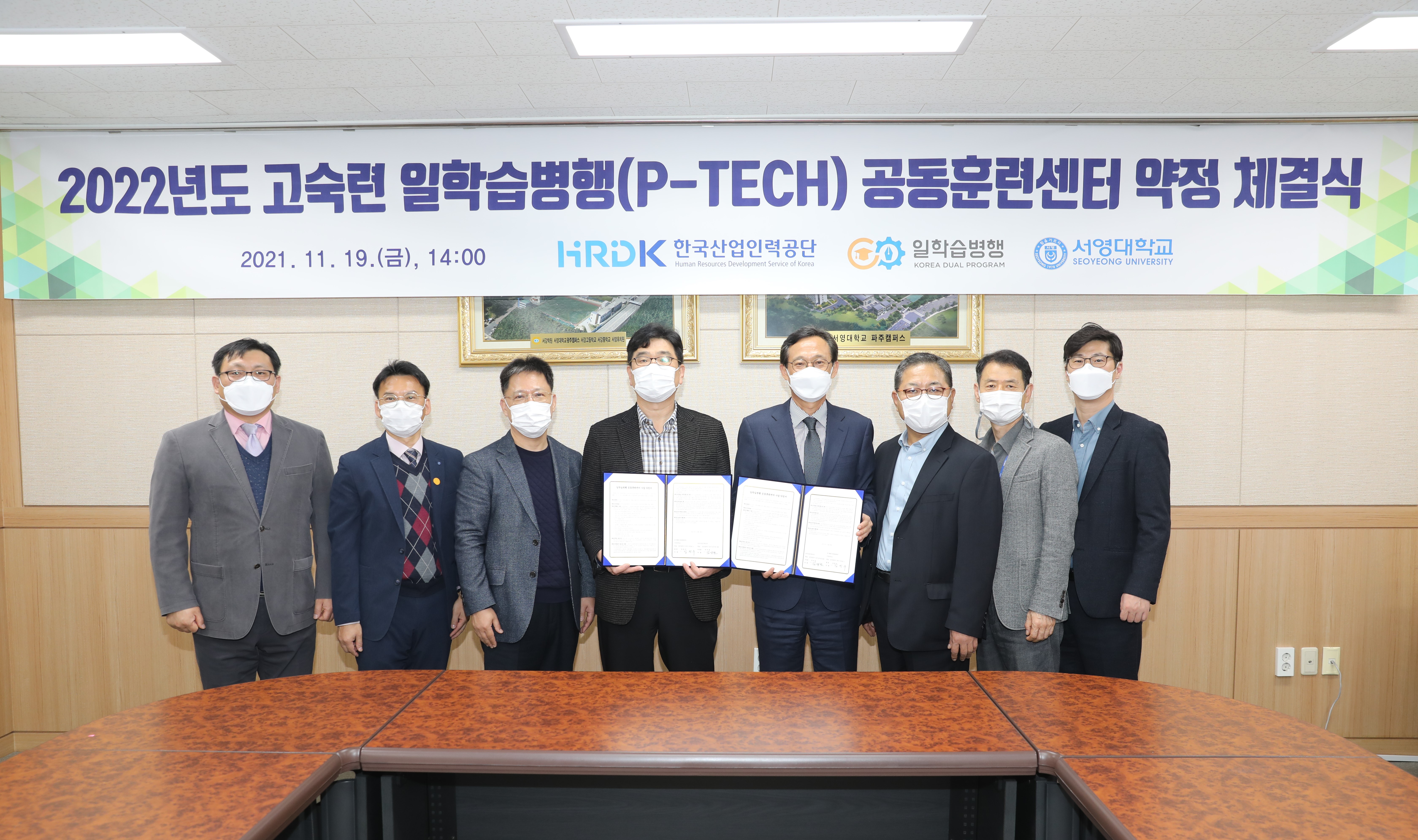 ○ 서영대학교가 한국산업인력공단과 ‘2022년 신규 일학습병행 공동훈련센터(P-TECH) 지정에 따른 사업’ 수행을 위한 약정을 19일 체결했다.