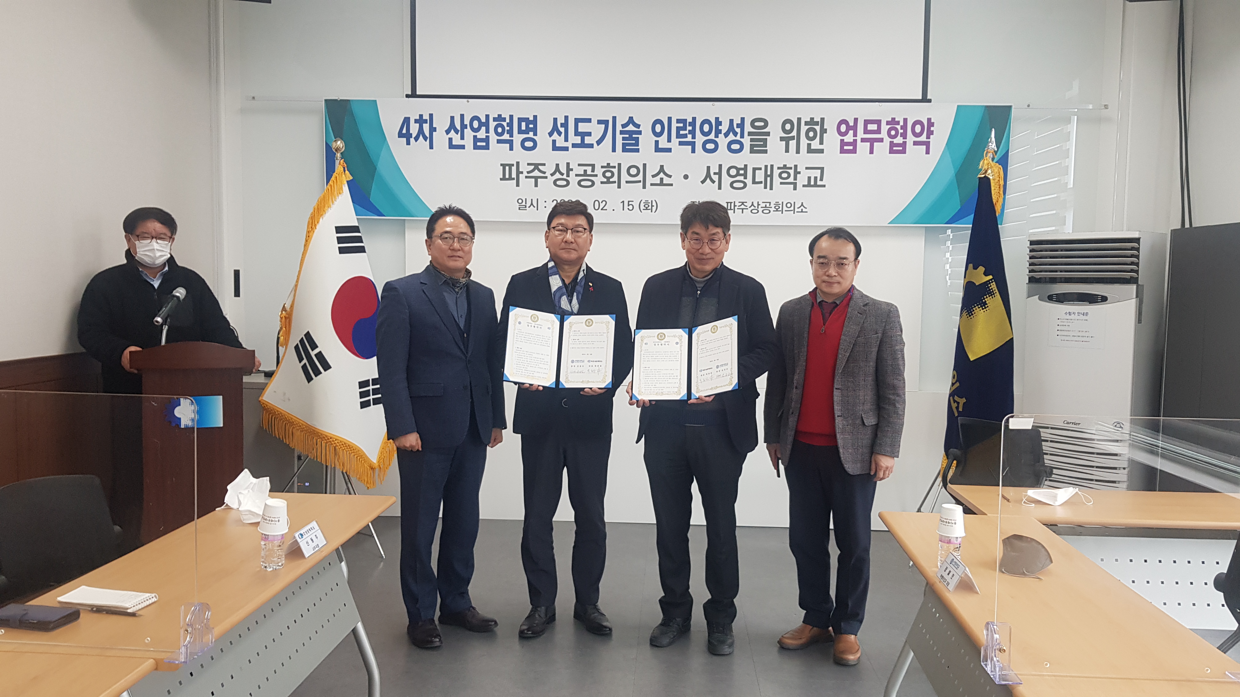o. 서영대학교 (총장 김정수)는 18일 파주상공회의소 회의실에서 김순곤 서영대학교부총장, 파주상공회의소 회장이 참석한 가운데 4차산업혁명 선도기술 인력양성을 위한 학·산 공동협력 협약을 체결했다.