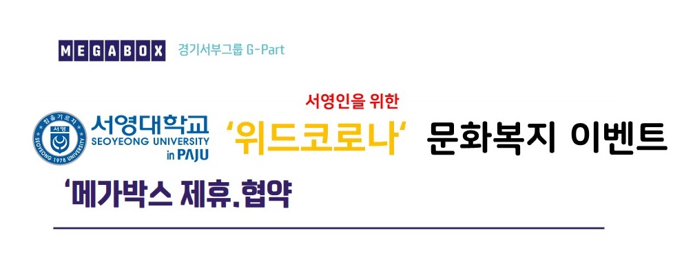 O. 우리 대학( 총장 김정수 )은 메가박스 영화관 (경기 서부그룹 )과 위드코로나 시대를 활기차게 준비하기 위한 이벤트를 제공한다.