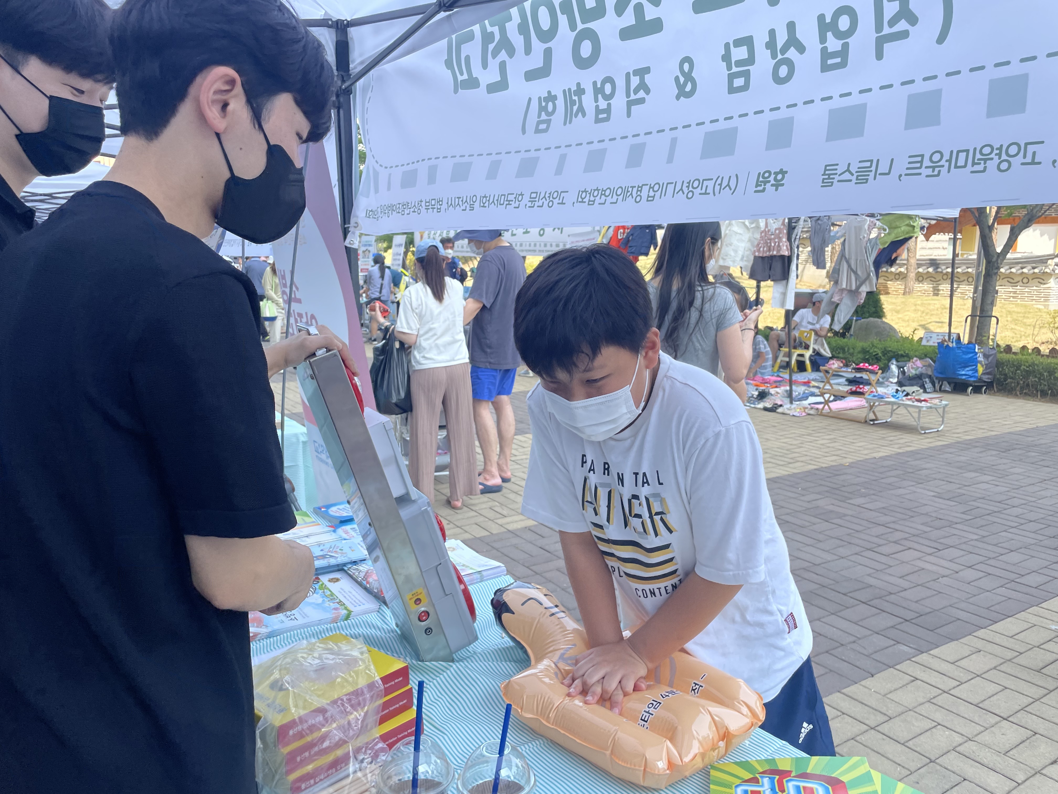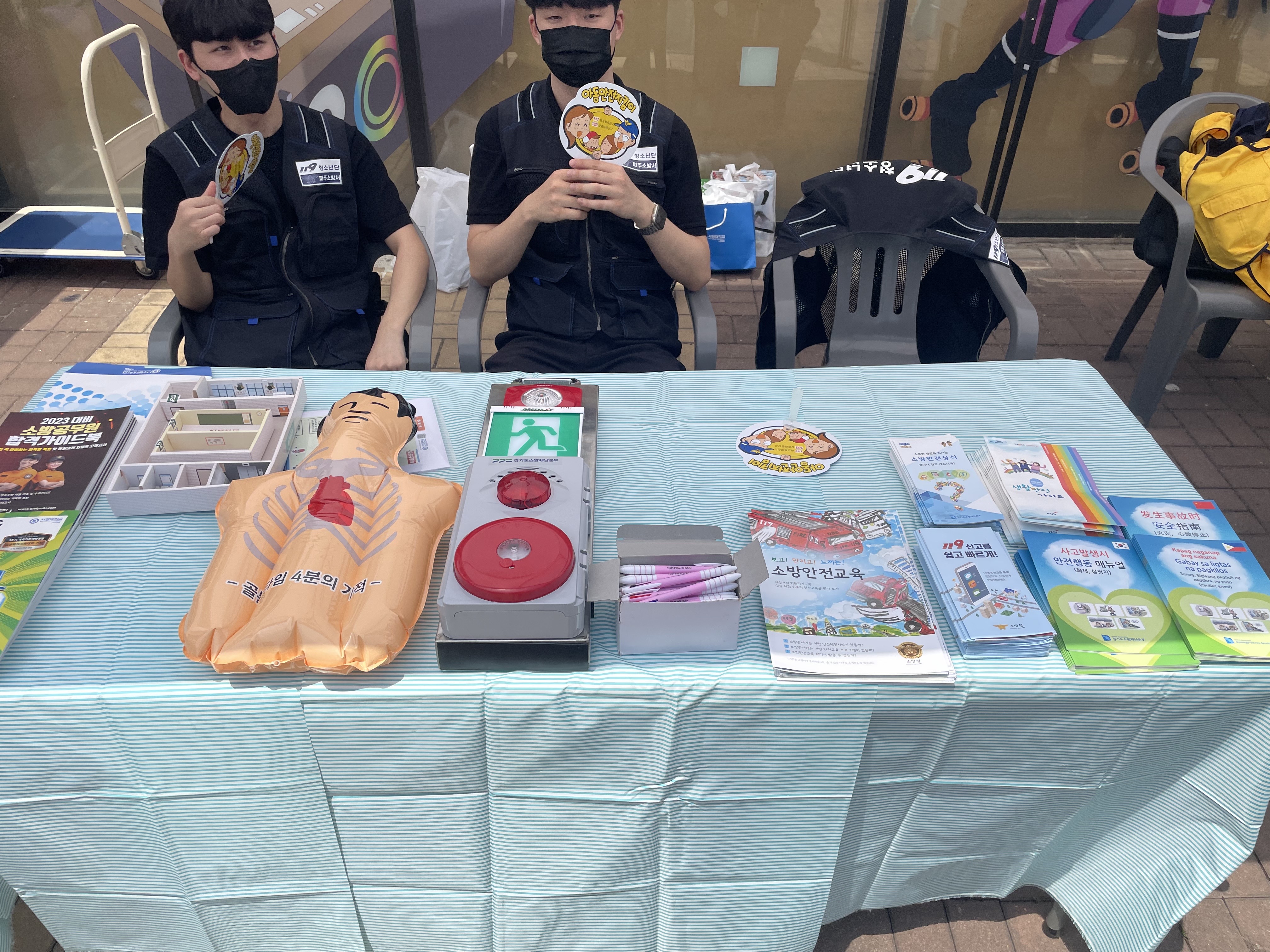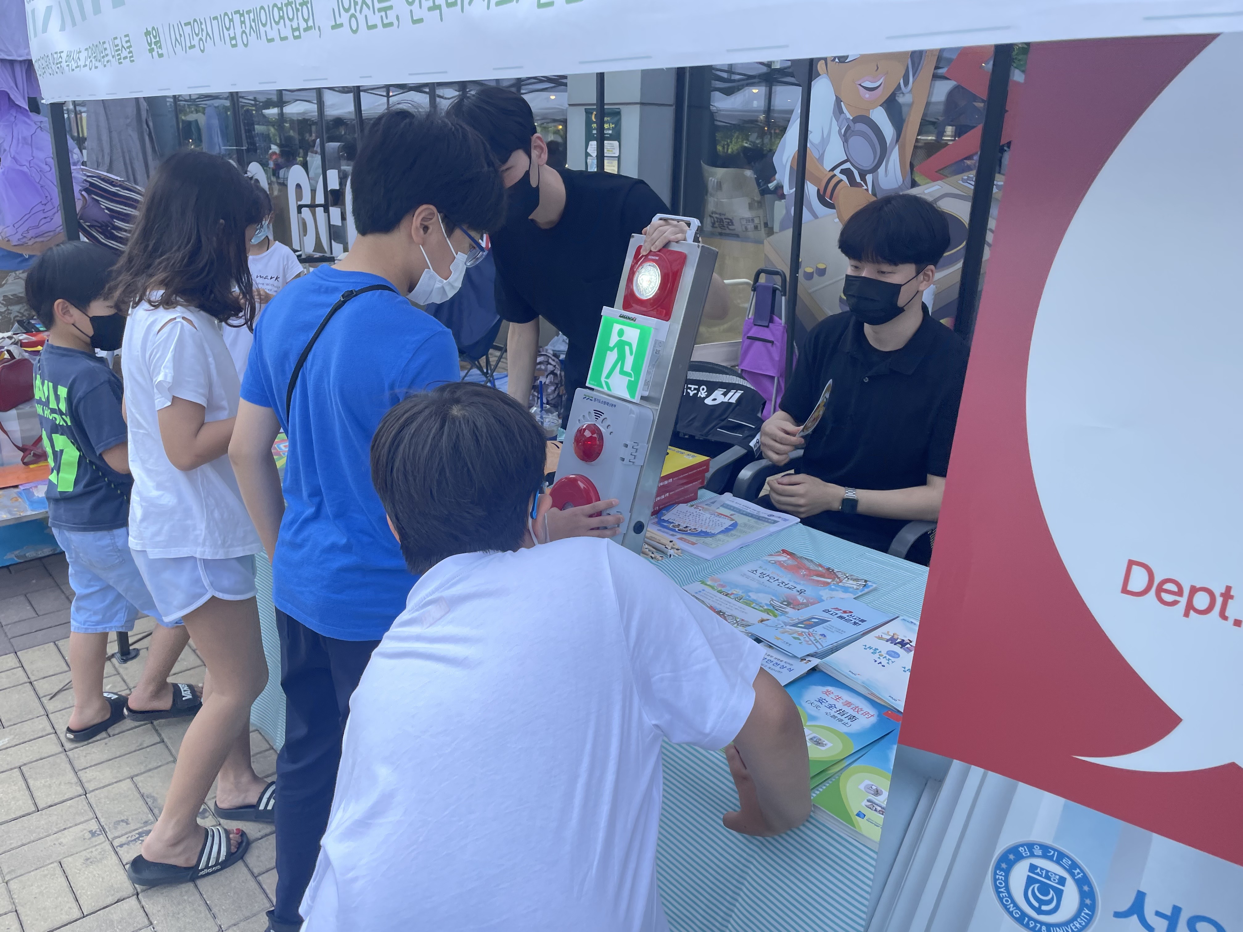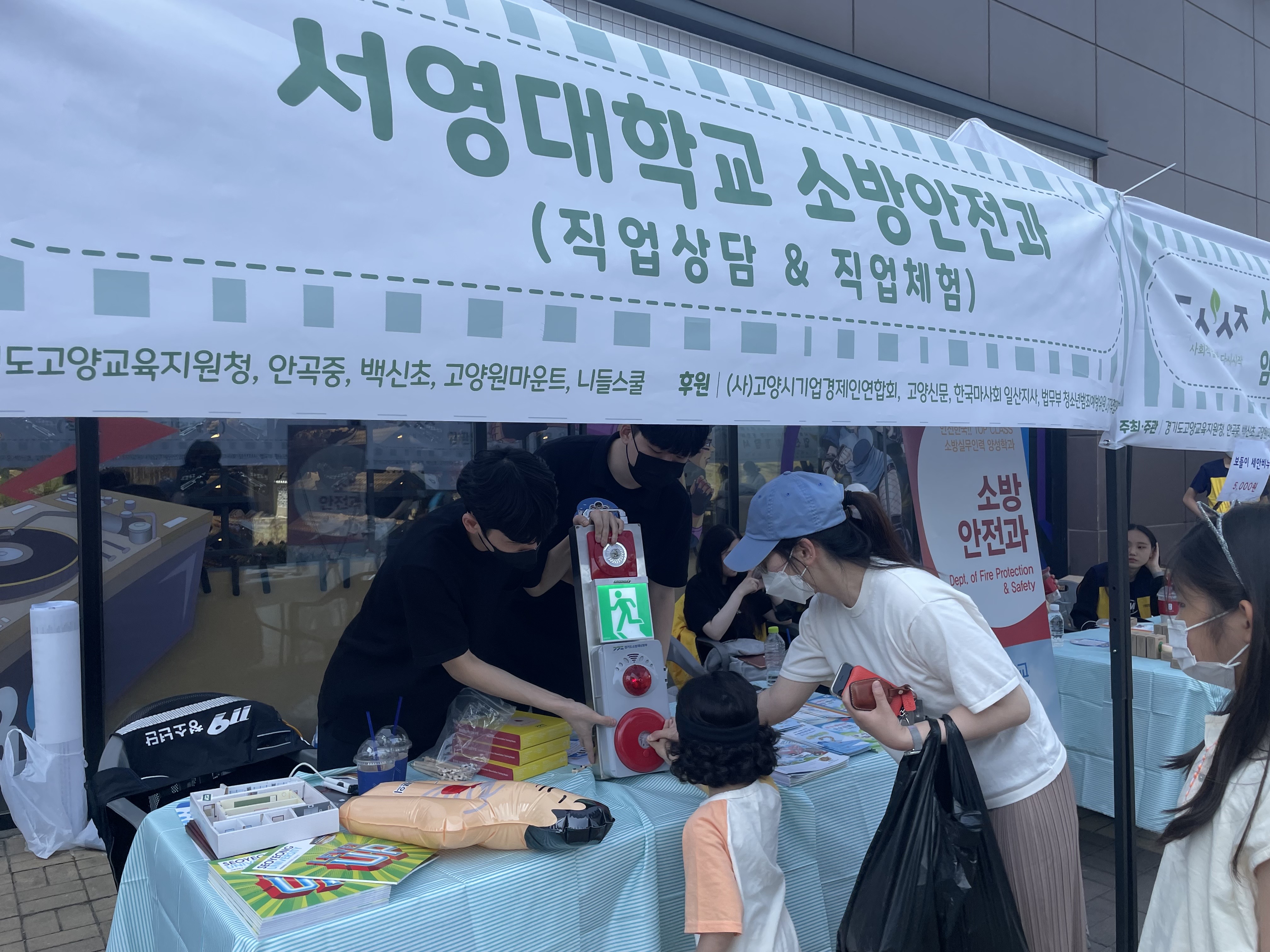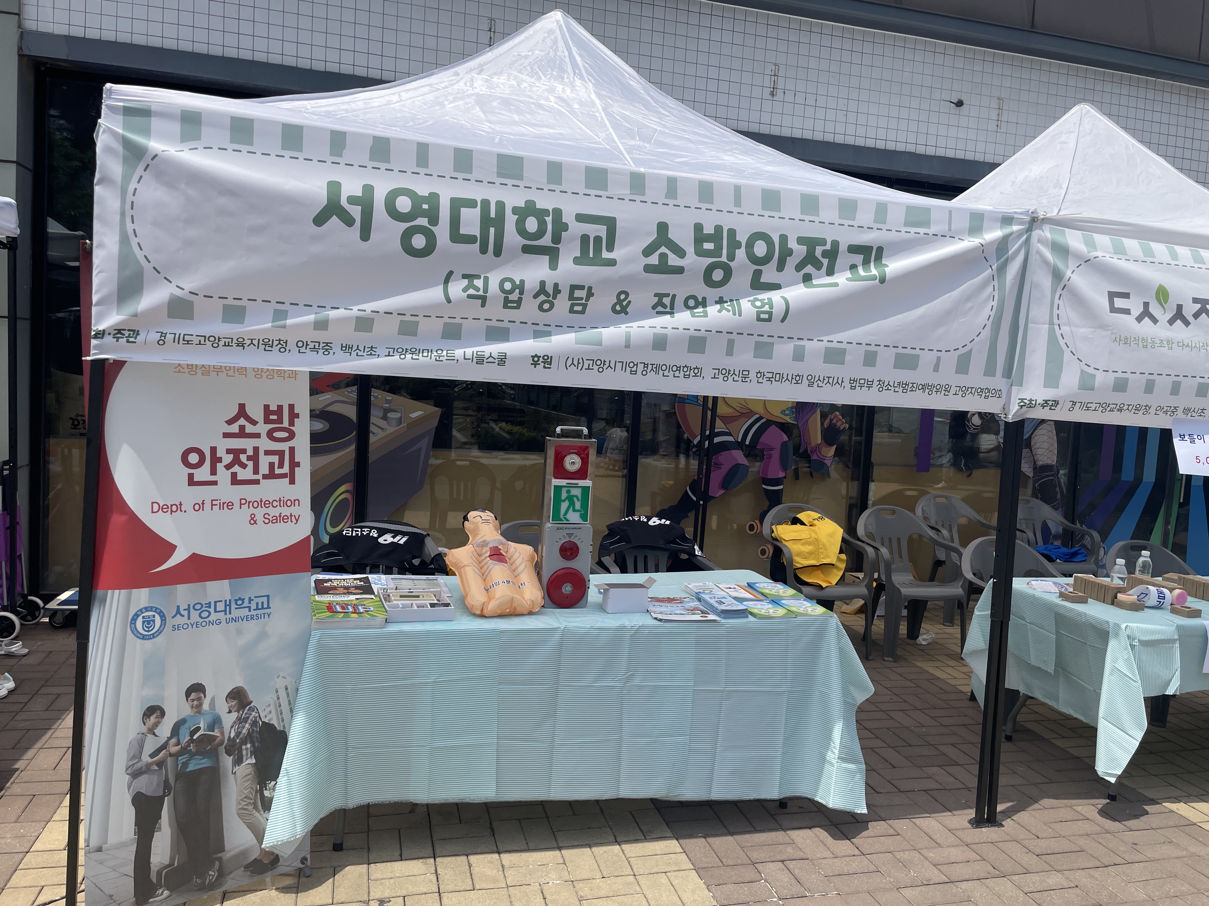O. 소방안전과 소속 불안당( 한국119청소년단) 동아리 회원들이 행사에 참가한 부모님과 어린이들을 위해 학과에서 준비한 소방안전 체험 행사를 진행 하다, 응급상황시 대처방법에 대한 심폐소생술 체험 교육 , 화재경보신호 보내기 등 생활 화재 안전에 꼭 필요한 안전지식을 체험 프로그램으로 진행 하였으며, 소방안전과와 소방분야에 대한 진로, 진학 상담도 진행 하였다.