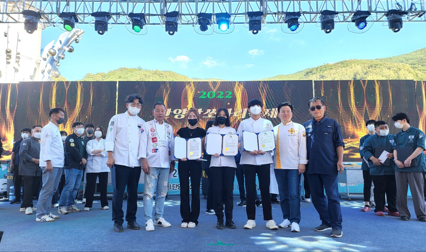 O.우리대학(총장 김정수) 호텔외식조리과(학과장 김장호)가 ‘2022 전국대학 쏘가리경연대회’에서 대상(단양군수)을 수상하는 쾌거를 거두었다.