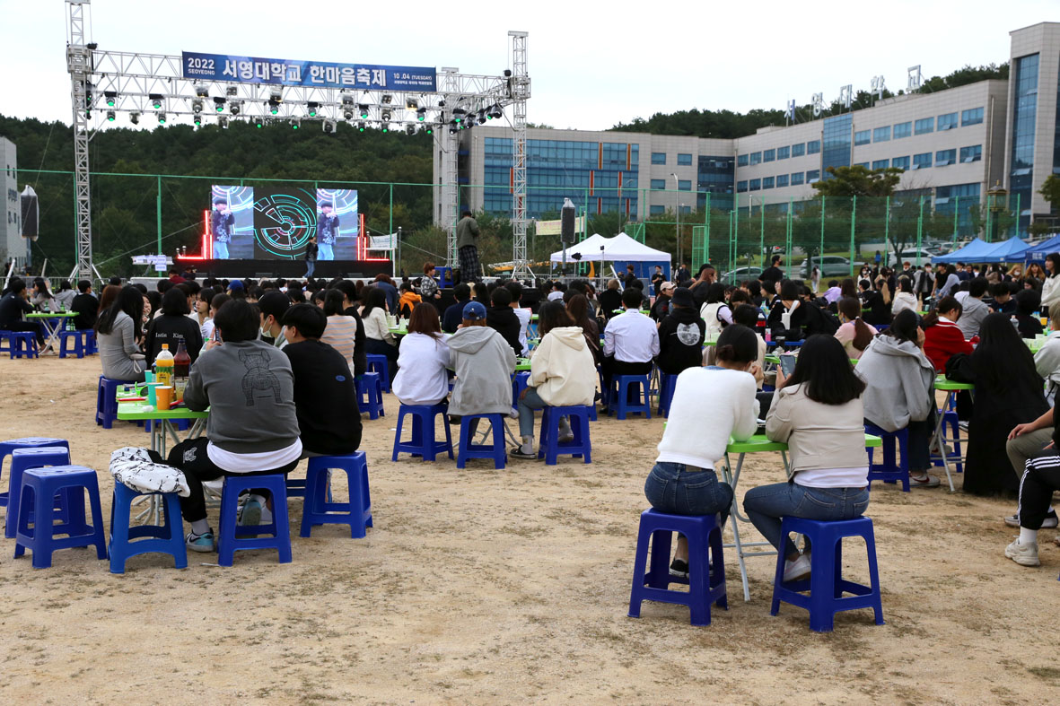 O. 우리대학 ( 총장 김정수) 은 4일 서영대학교 대운동장에서 성대한 "서영 한마음 축제"를 개최하였다. 2019년 이후 3년만에 열린 " 2022 서영 FESTIVAL "은 파주지역주민과 서영대학교 학생들이 함께 어울리는 지역 문화 축제로 진행 되었으며, 학생들의 노래자랑 등 참여형 프로그램 및 멀티미디어디자인과, 호텔관광과 등 학과의 특화된 역량을 기부하는 학과체험부스도 운영되었다. 또한, 소방안전과와 파주소방서는 행사장의 안전을 위해 봉사활동도 펼쳤다.