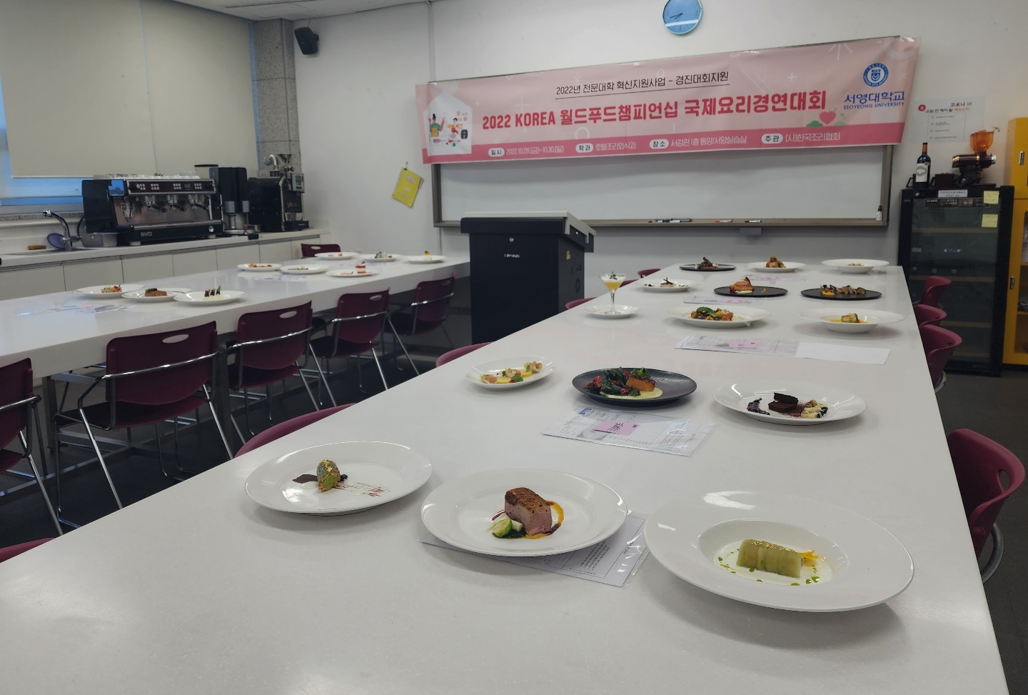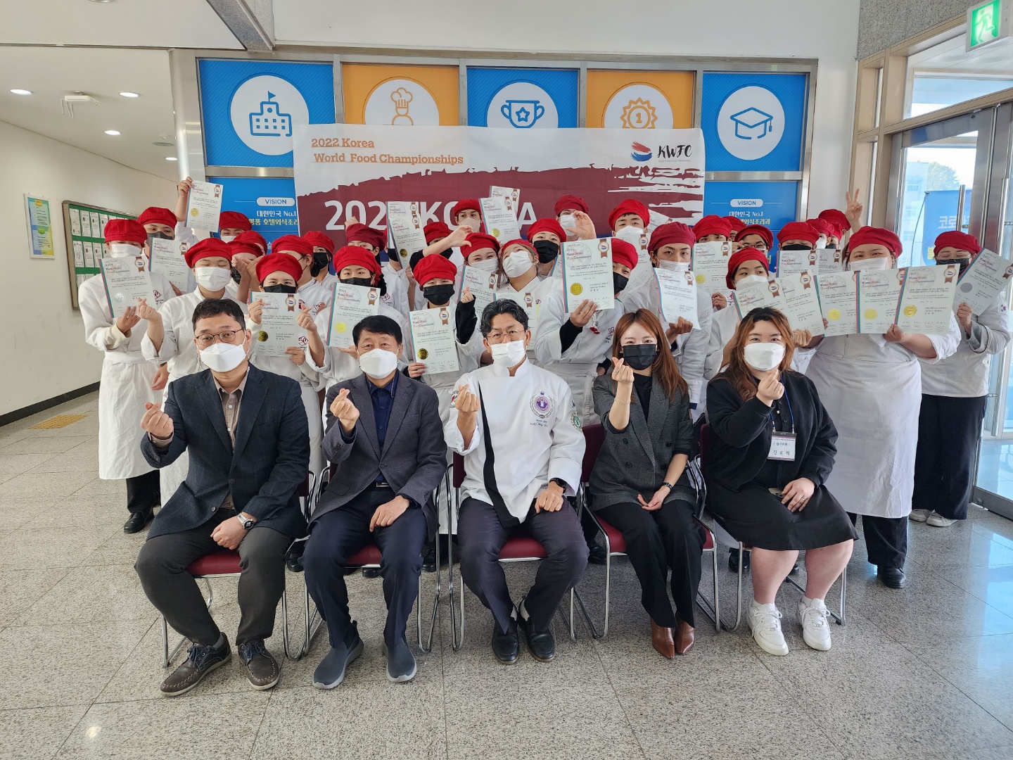 O. 우리대학(총장 김정수) 호텔외식조리과(학과장 김장호 교수)가 ‘2022 코리아월드푸드챔피언십’에서 대상(서울특별시장상) 및 최우수상, 금상, 은상, 동상을 대거 수상하는 쾌거를 거두었다. O. ‘2022 코리아월드푸드챔피언십’은 한국음식문화 및 외식산업 향상을 위하여 개최되고 있는데 이번 대회는 28일부터 29일까지 2일간 양재동 aT센터 및 각 지역별 거점대학에서 분할 개최하였다. 우리 대학은 심사위원 3인을 대회 본부에서 파견받아 학과에서 자체적으로 대회를 실시하였다. O.이번 행사는 (사)한국조리협회와 (사)조리기능장려협회, (사)한국집단급식협회가 주최한 이번 요리대회는 최근 인기 웰빙식으로 떠오른 한식을 기반으로 하는 요리경연대회로 , 단순 먹거리의 개념을 넘어 요리가 예술이자 한 나라의 대표 문화임을 알아볼 수 있는 ‘2022 코리아월드푸드챔피언십’는 2022년 선수규모 2,350명의 국내 최대 요리 축제로, 전국에서 모인 조리관련학과 학생들과 일반인이 참가해 기량을 겨뤘다. O. 호텔외식조리과 1,2,3,4학년 재학생 51명(11팀)이 라이브요리부문에 참가했으며 권O주 외 3명이 서울특별시장상인 대상을, 김O수 외 4명이 최우수상의 영예를 안았다.