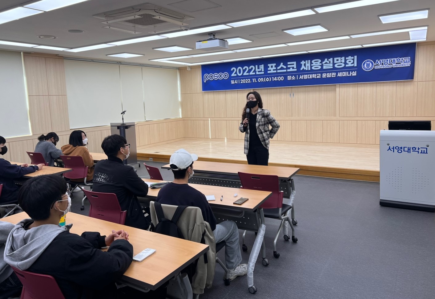 ○ 우리대학이 지난 9일 운암관 세미나실에서 공학계열 재학생 및 졸업생 50여명을 대상으로 ‘2022 하반기 2차 포스코 생산기술직 채용형 인턴 신입사원 채용설명회’를 실시했다.