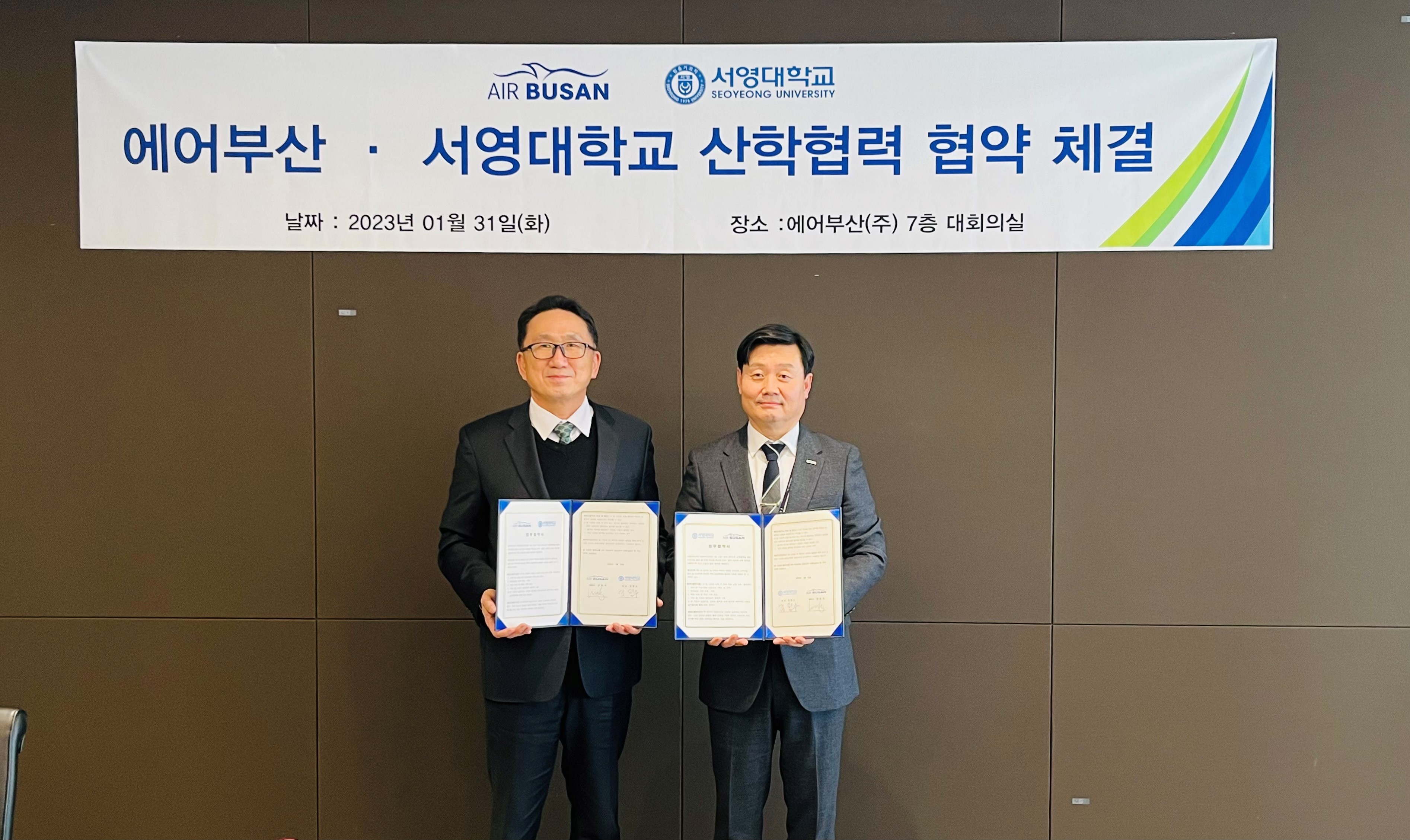 ○ 우리대학 이승철 부총장은 “국제선정시성, 고객안정성, 이용자만족도 등에서 최우수 등급 항공운송서비스를 제공하는 에어부산과 협약을 맺게 돼 기쁘다”며 “항공호텔관광과 학생들에게 우수한 실습교육을 제공하여 학생들의 취업경쟁력 향상을 기대한다”고 말했다.