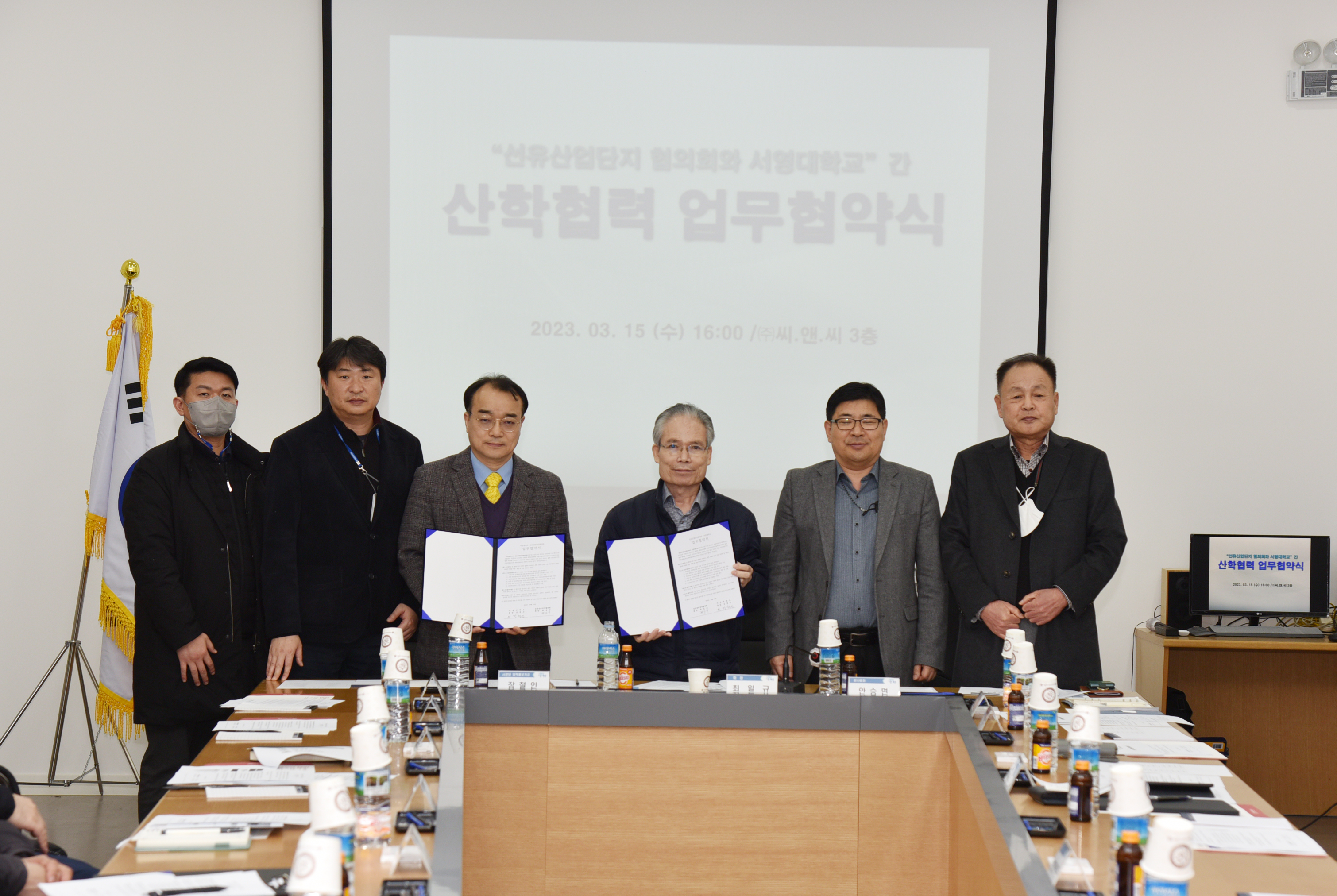 O. 우리대학(총장 김정수)은 3월15일(수) 선유산업단지협의회(회장 최일규)와 유기적인 상호 협력 체계 구축을 위한 협약을 체결하였다. 선유산업단지 회의실에서 진행된 협약식은 서영대학교 입학홍보처장 장철인, 입학관리과장 신훈희, 산학협력팀장 이재성 외 서영대학교 관계자와 선유산업단지 협의회 회장 최일규 외 선유산업단지 관계자 총 10여명이 함께 참석하였다.