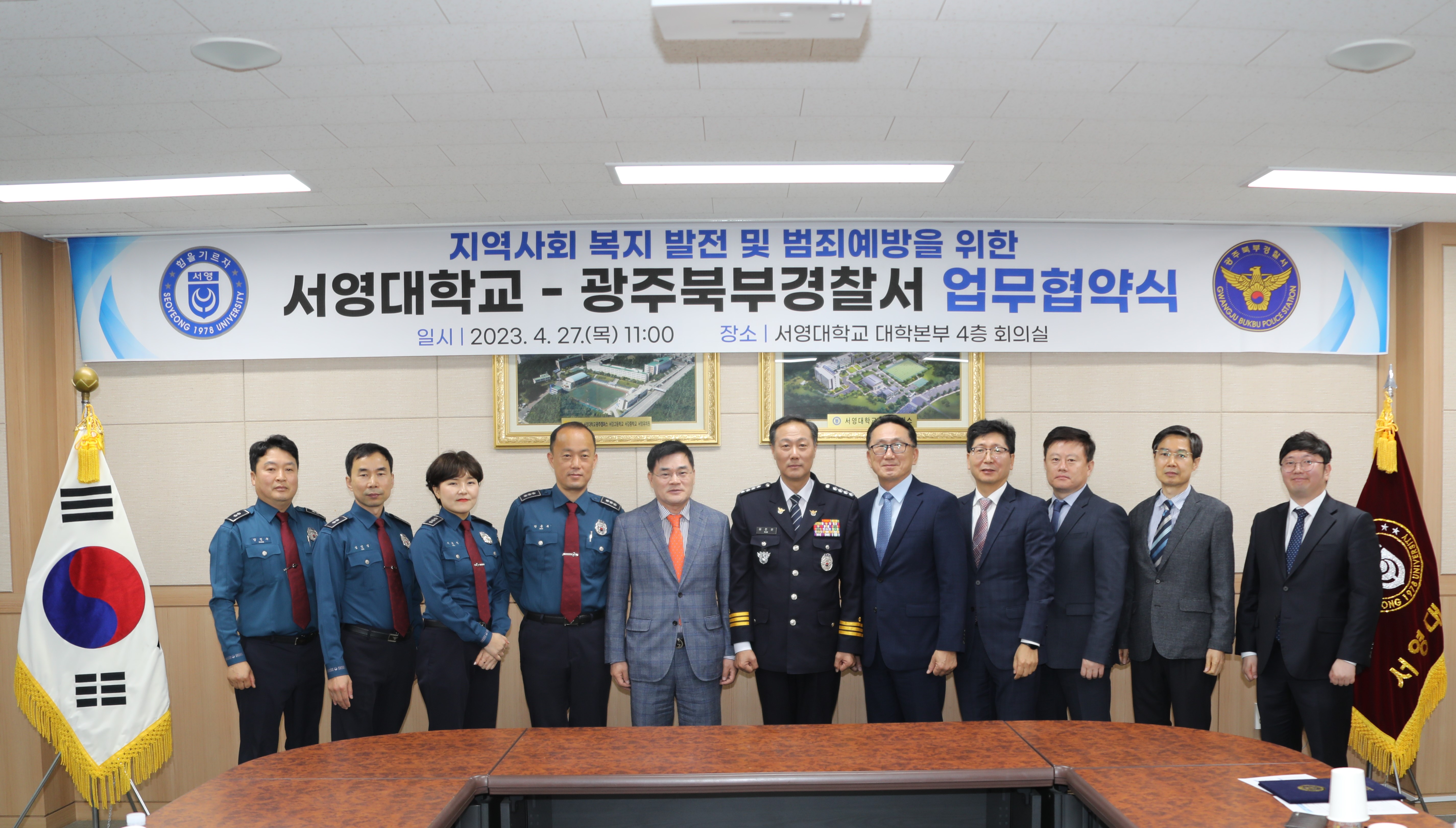 ○ 우리대학은 27일 대학본부 4층 회의실에서 광주북부경찰서와 지역사회 범죄 예방 및 학생 안전을 위해 상호 협력하는 협약을 체결했다.