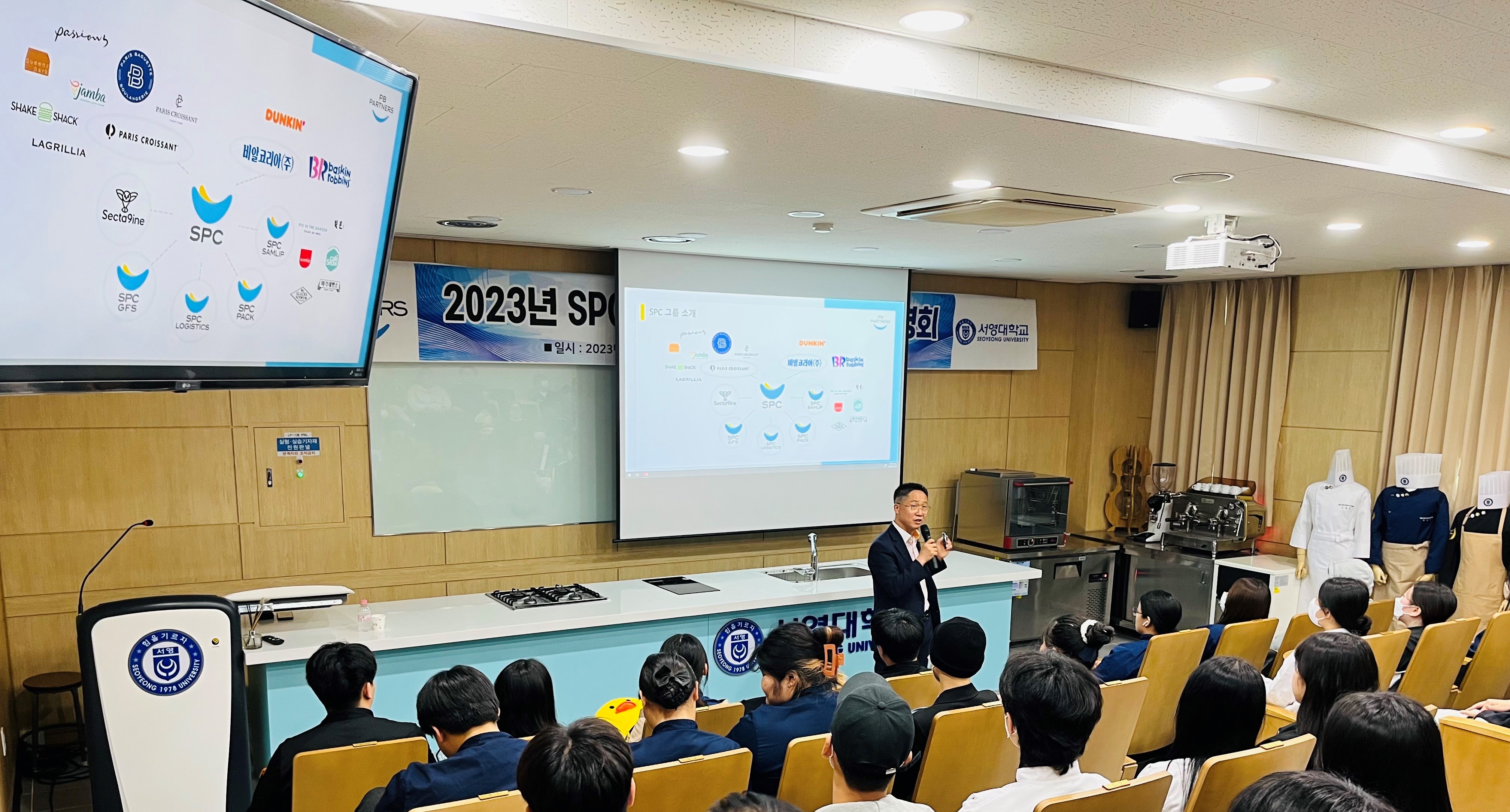 ○ 우리대학이 지난 22일 교내 서영관 데모키친실습실에서 호텔조리제빵과 재학생 50명을 대상으로 SPC PB파트너즈 채용설명회를 가졌다.