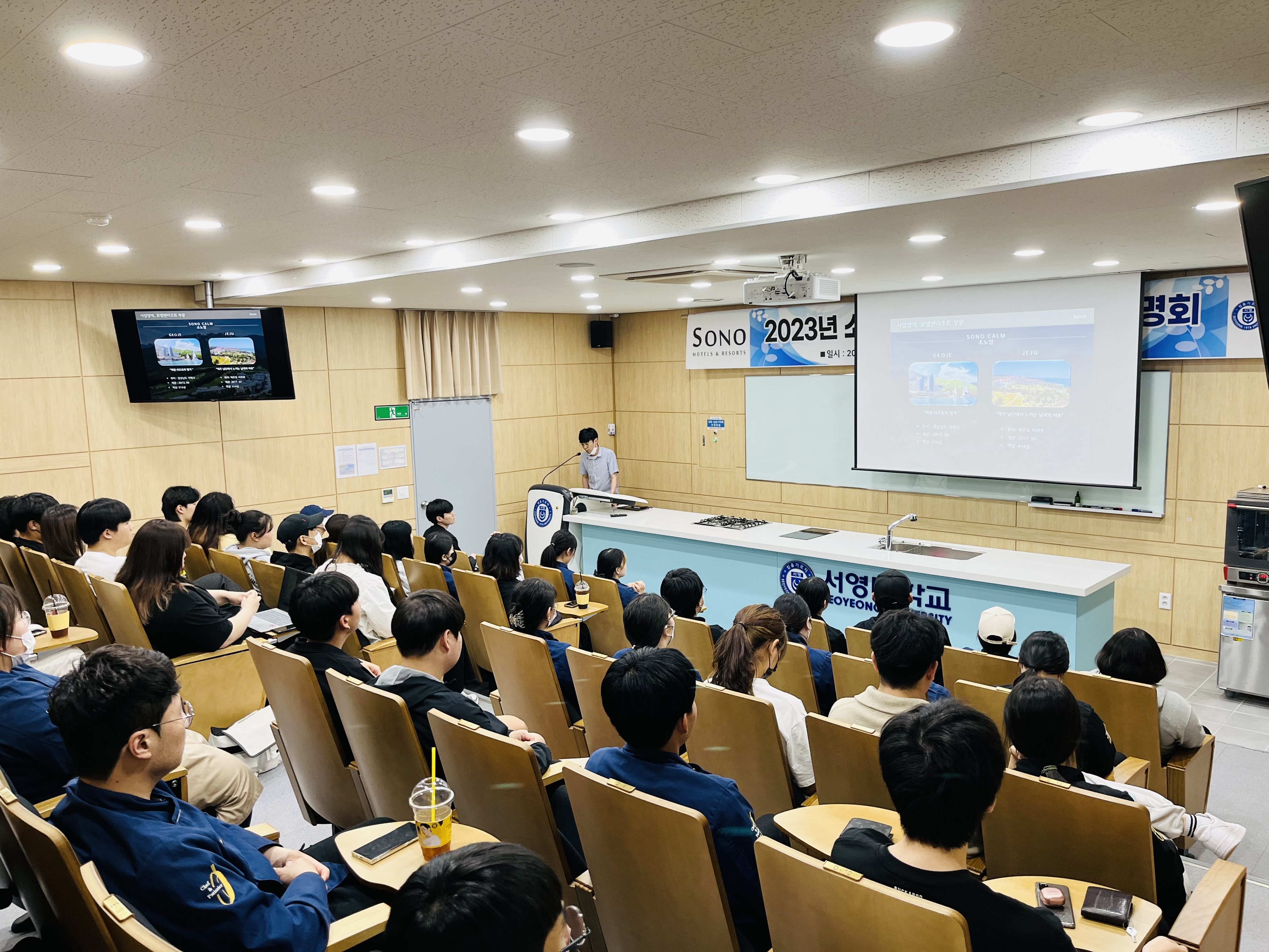 ○소노호텔앤리조트는 국내 최대 호텔&리조트로소노펠리체,솔비치,소노캄,소노벨,소노문,소노휴브랜드를 보유하고 있는 대명소노그룹 계열이다.소노호텔앤리조트는7-8월 여름 성수기를 앞두고 산학실습과 취업을 연계한 채용설명회를 진행하고자 우리대학 호텔조리제빵과를 찾았다.