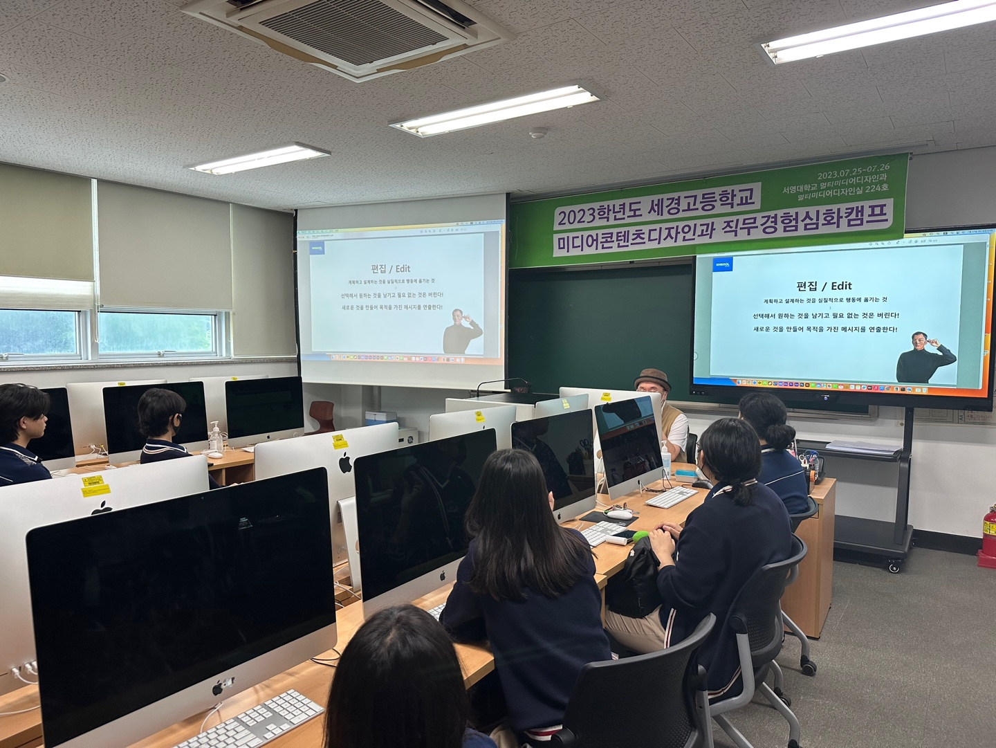 O. 우리대학(총장 김정수) 멀티미디어과(학과장 구윤희)는 7월 25일(화) ~26일(수) 세경고등학교(교장 장계홍) 2학년 미디어콘텐츠디자인과 2학년(10명) 재학생들을 위한 직무경험심화캠프를 진행하였다. 이번 진행된 진로경험심화캠프는 전공 및 직업군에 대한 이해를 기초로 직무관련 심화교육을 통해 전공역량을 함양할 수 있도록 마련된 프로그램이다.