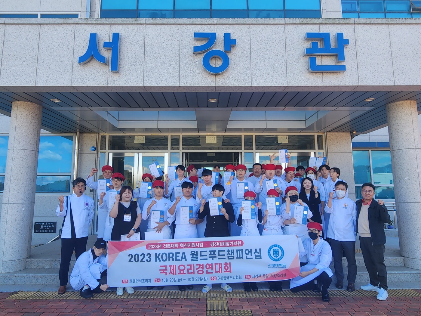 O. 서영대학교 파주캠퍼스 호텔외식조리과(학과장 박인수)는 2023년 10월 21일부터 22일까지 2일간 양재동 aT센터에서 개최된 ‘2023 KOREA 월드푸드챔피언십 국제요리경연대회’에서 최우수상(농촌진흥청장상)과 함께 우수상(국회의원상), 금상, 은상, 동상을 대거 수상하는 쾌거를 거두었다(지도교수 김장호·이희민). O. ‘2023 KOREA 월드푸드챔피언십 국제요리대회’는 세계음식문화 및 외식산업 향상을 위하여 (사)조리기능장협회, (사)조리기능장려협회, (사)한국조리협회의 공동주관으로 진행되었다. 본 국제요리대회는 K-food의 전 세계적 열풍과 함께 미래 성장 가능성이 높은 조리 분야의 최대 경진대회로서, 해외 및 국내에서 모인 조리 관련학과 학생들과 일반인 참가자 2,495명(1,043팀)이 참가해 기량을 겨루었다. O. 서영대학교 파주캠퍼스 호텔외식조리과는 총 41명이 라이브요리부문에 참가하였으며, 농촌진흥청장상인 최우수상(권○주 외 4명)을 비롯하여 국회의원상인 우수상(최○강 외 3명)과 금상(한○민 외 8명), 은상(여○름 외 13명), 동상(전○진 외 8명)을 전원 수상하는 영예를 안았다.