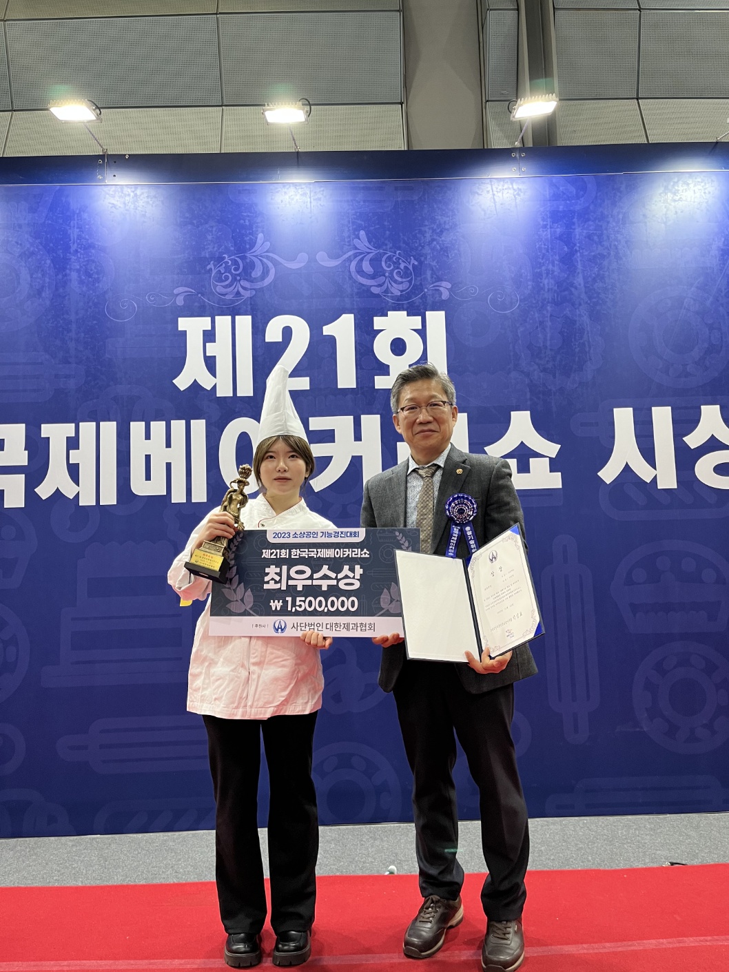 O. 우리대학(총장 김정수) 호텔외식조리과(학과장 박인수, 지도교수 이희민)는 지난 11월 22일부터 25일까지 열린 “2023 한국국제 베이커리쇼” 쁘띠가토 부문에서 최우수상을 수상하는 쾌거를 거두었다. ‘한국국제베이커리쇼는 국내를 대표하는 최대 규모의 베이커리 쇼로 중소벤처기업부가 주최하고 소상공인시장진흥공단, 소상공인연합회의 주관으로 코엑스에서 진행되었다. O. 이번 대회에서 우리대학의 호텔조리학과 재학생 이○영 학생은 ‘작고 예쁜 케익류를 의미하는 쁘띠가토’부문에 참가해서 최우수상과 상금을 수상하는 영애를 안았다. 이에 우리대학 평생교육원 제과,제빵담당 교수인 류재은 대표(류재은베이커리)는 이번 대회의 운영총괄기술위원으로서 재학생의 대회 참가 방향성에 대해 아낌없는 조언을 해주었다. O. 한국국제 베이커리쇼는 지난 1983년부터 격년으로 열리는 역사가 깊은 베이커리 행사이다. 베이커리쇼의 꽃 중 하나는 명예와 상금이 걸려있는 베이커리 경연대회로 전국에 있는 제과, 제빵 기술자들이 빵과 구움과자, 케이크, 화과자, 빵공예, 초콜릿 공예, 설탕 공예, 슈커크래프트 등 다양한 작품을 통해 경진대회에 참여한다.
