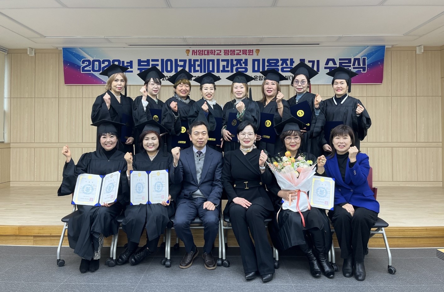 ○ 서영대학교 평생교육원은 지난해 가을학기부터 진행된 '뷰티아카데미 미용장 과정'의 제1기 수료식 행사를 가졌다고 5일 밝혔다.