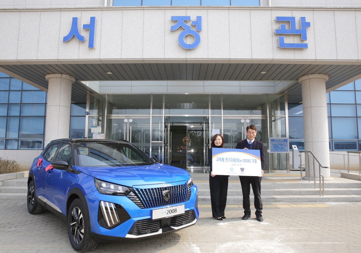 O. 주식회사 스텔란티스코리아(대표이사 방실)는 금일 행사에서 푸조 24년식 e-2008 SUV 전기자동차를 우리대학 미래자동차과에 기증하였다. 푸조 e-2008 SUV는 국내 최초 전기 모빌리티 교육용 교보재이다. 기증받은 전기자동차는 앞으로 미래자동차과 재학생 및 자동차계열 특성화고 재학생과 직업훈련 기관 교육을 비롯하여 지역사회 산업체 재직자 교육에도 적극 활용 할 예정이다.