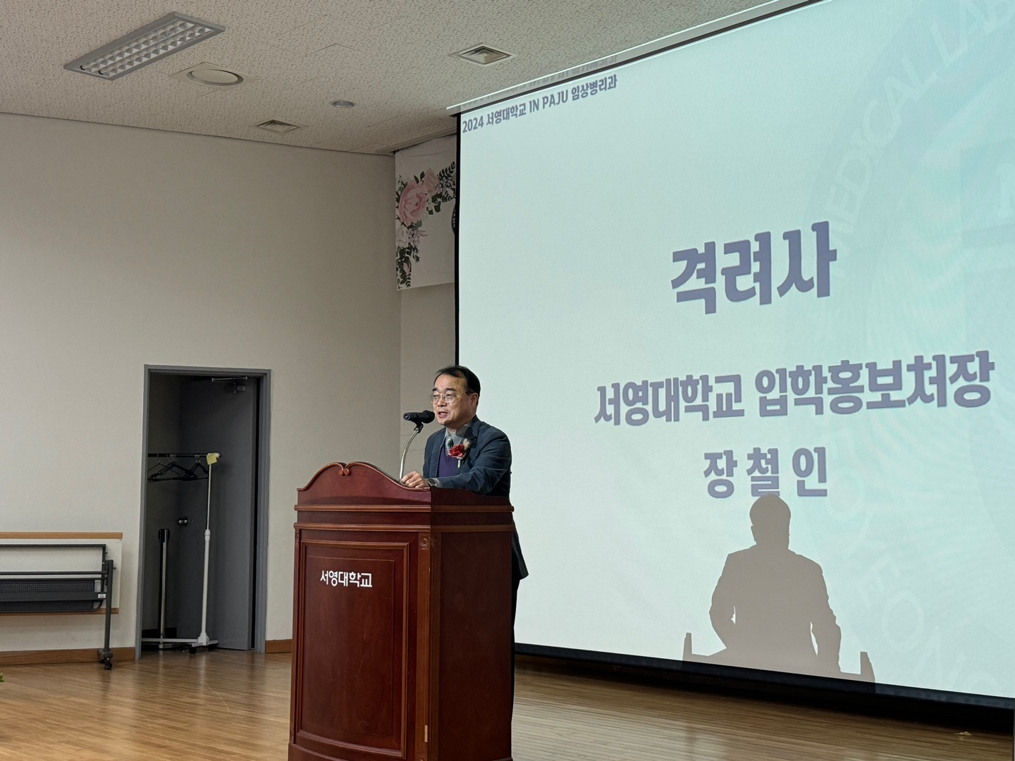 O. 우리대학(총장 김정수) 임상병리과는 4월 4일(목) 제5회 "White Gown Ceremony"를 개최하였다. 서영관 서강홀에서 진행된 "White Gown Ceremony"행사에는 서영대학교 장철인 입학홍보처장, 이지웅 학과장 외 임상병리과 교수를 비롯하여 경기도임상병리사회 유광철 회장, 파주진로체험지원센터 이유희 센터장, 장은주 팀장이 내빈으로 행사에 참석하였다.